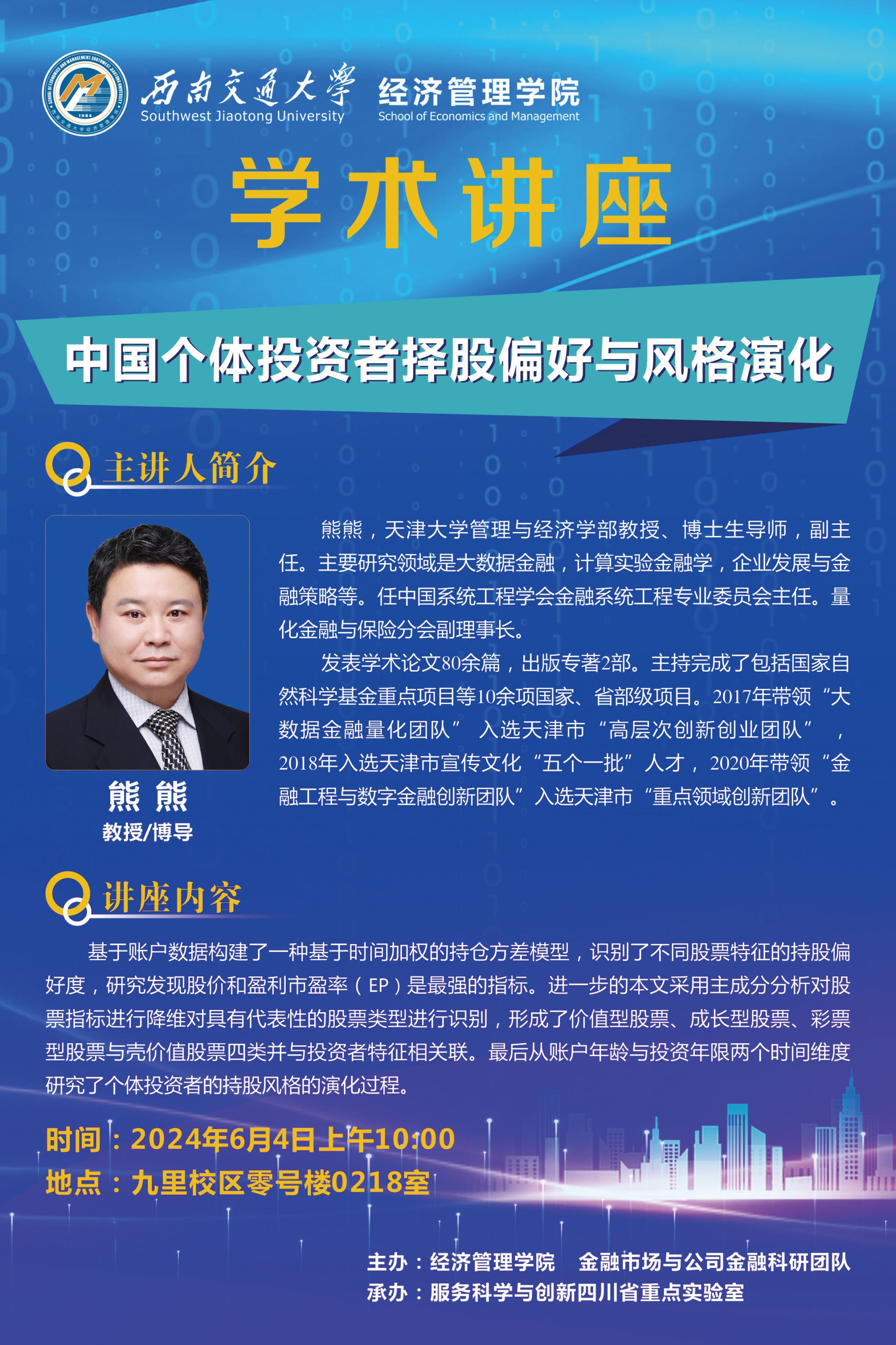 天津大学管理与经济学部熊熊教授学术讲座