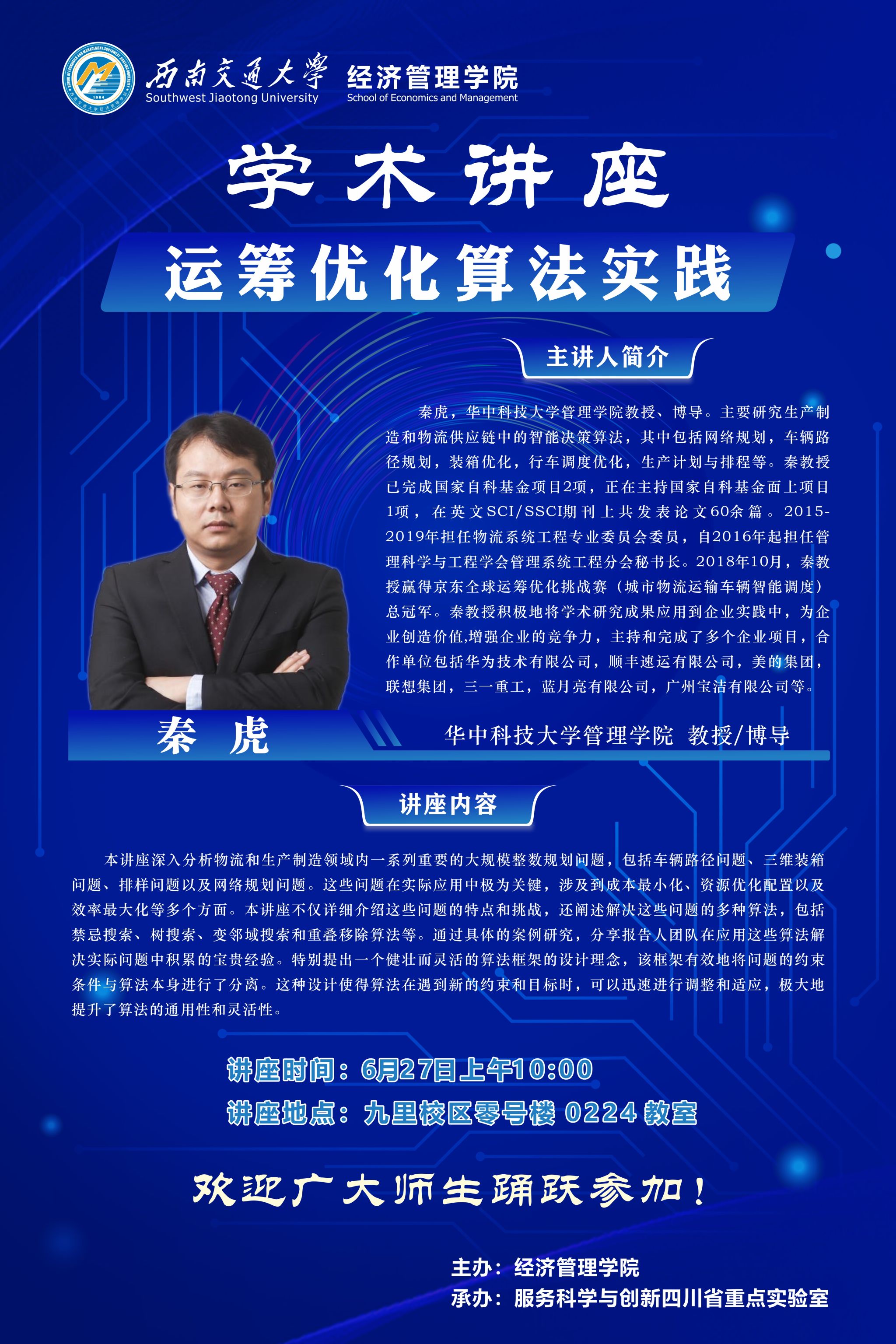 华中科技大学秦虎教授学术讲座