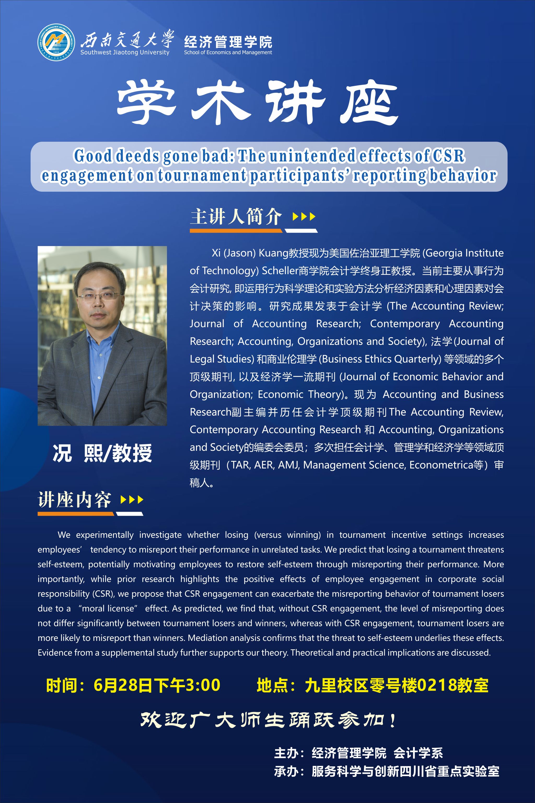 美国佐治亚理工学院况熙教授学术讲座