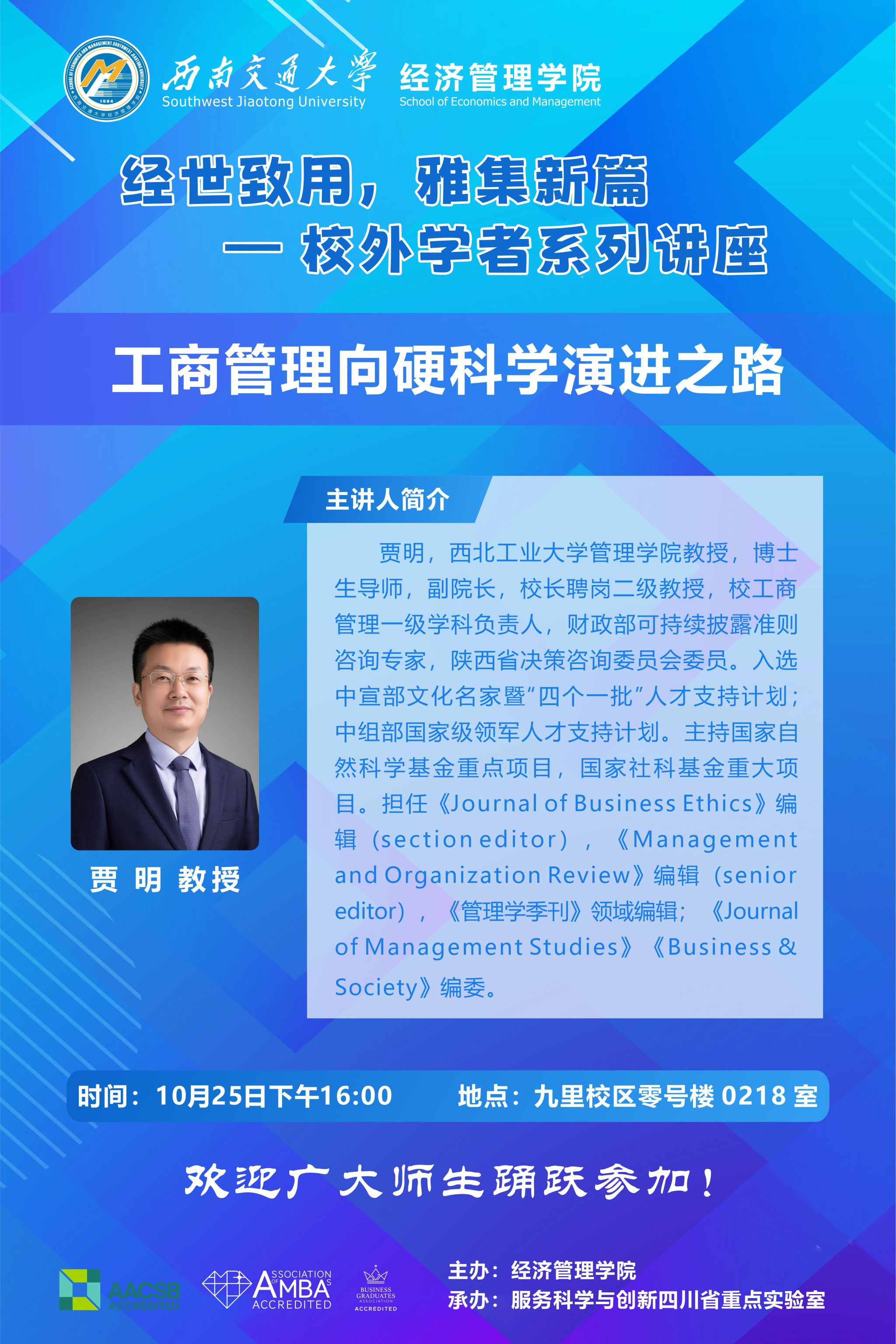 西北工业大学管理学院贾明教授学术讲座