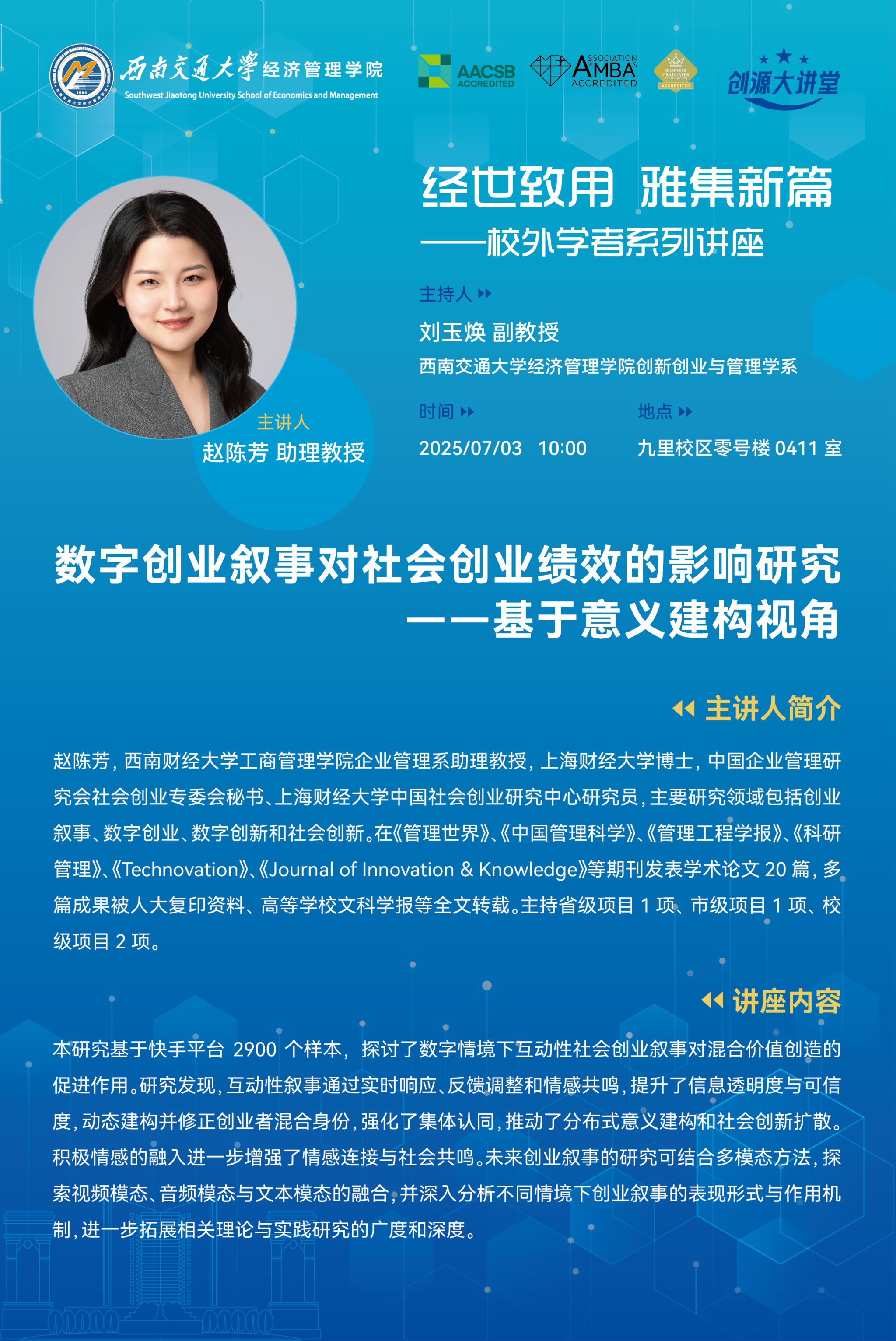 西南财经大学工商管理学院赵传芳助理教授学术讲座