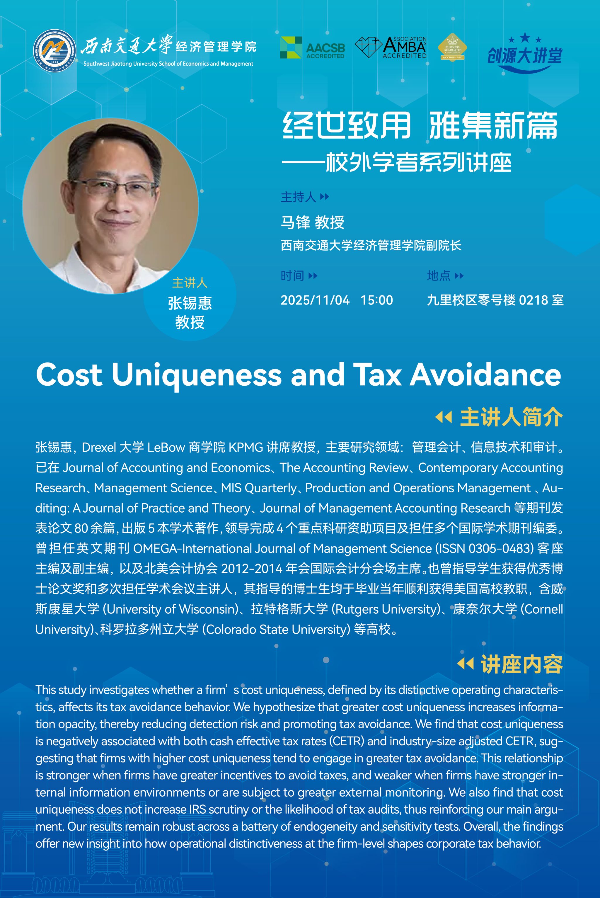 美国德雷塞尔大学LeBow商学院张锡惠教授学术讲座一