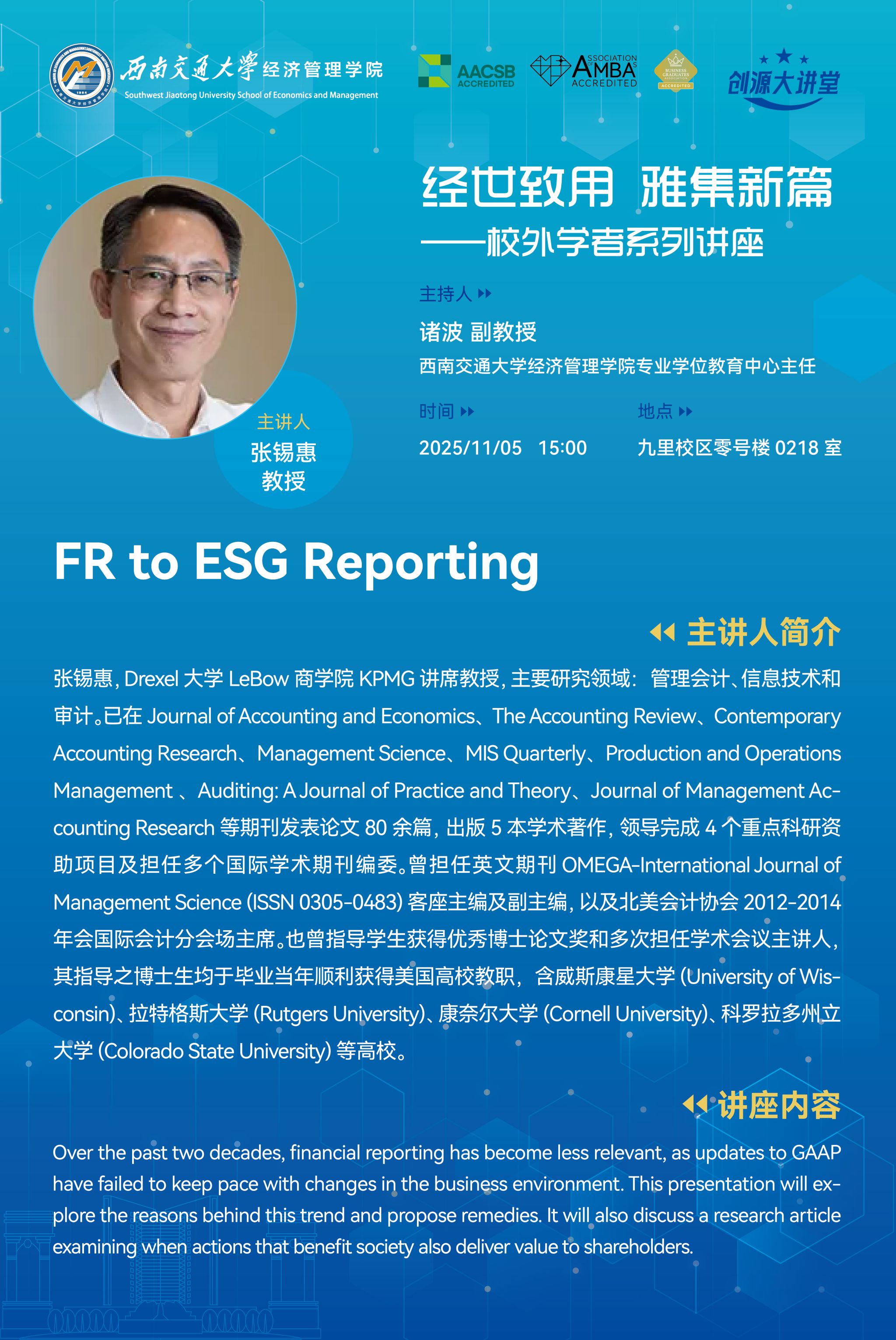 美国德雷塞尔大学LeBow商学院张锡惠教授学术讲座二