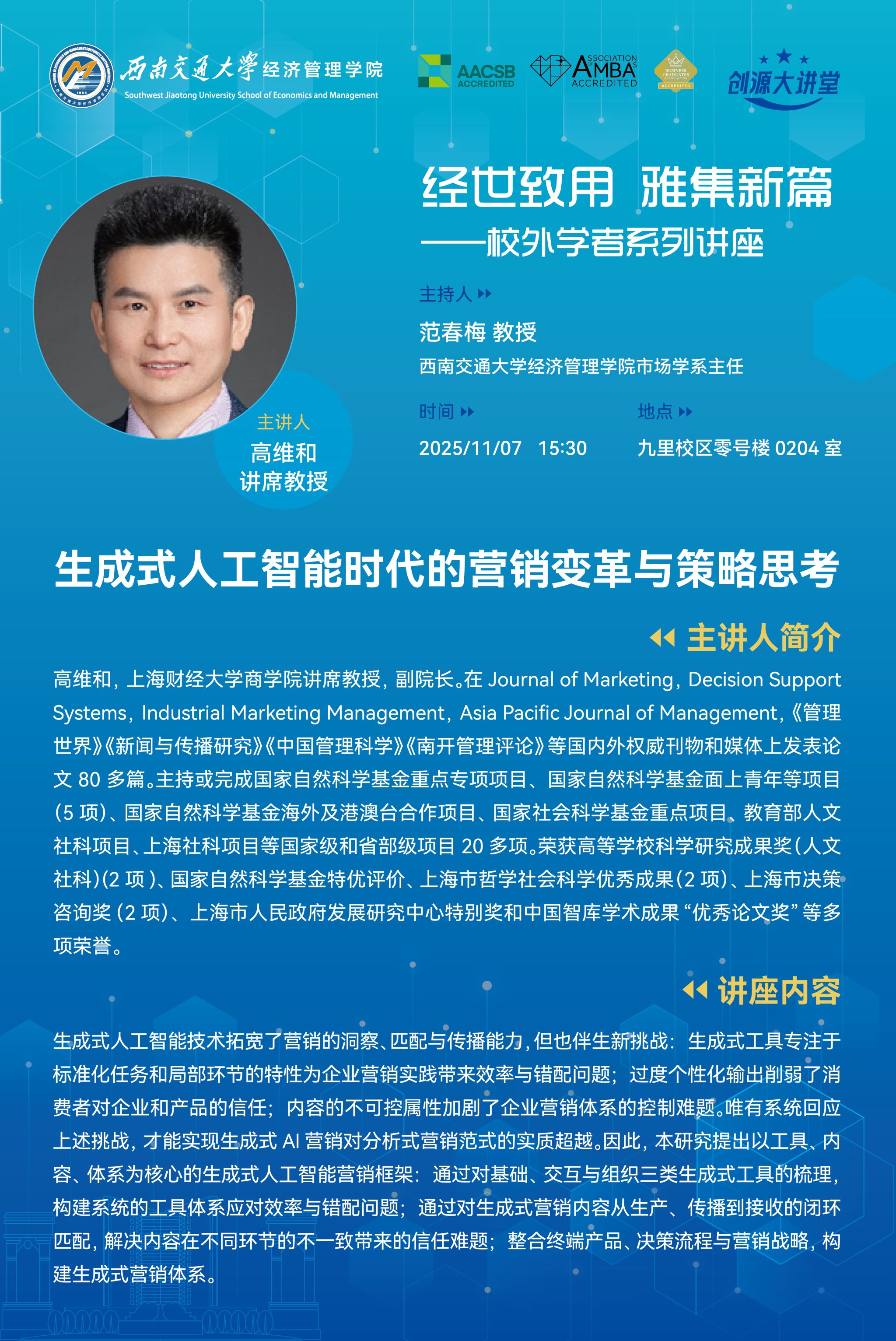 上海财经大学商学院高维和讲席教授学术讲座