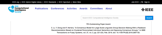Dr. Congcong Li, from the School of Economics and Management, won the 2022 IEEE TFS Outstanding Paper Award with a paper entitled “A consensus model for large-scale linguistic group decision making with a feedback recommendation based on clustered personalized individual semantics and opposing consensus groups”, which was published in IEEE Transactions on Fuzzy Systems in 2019.