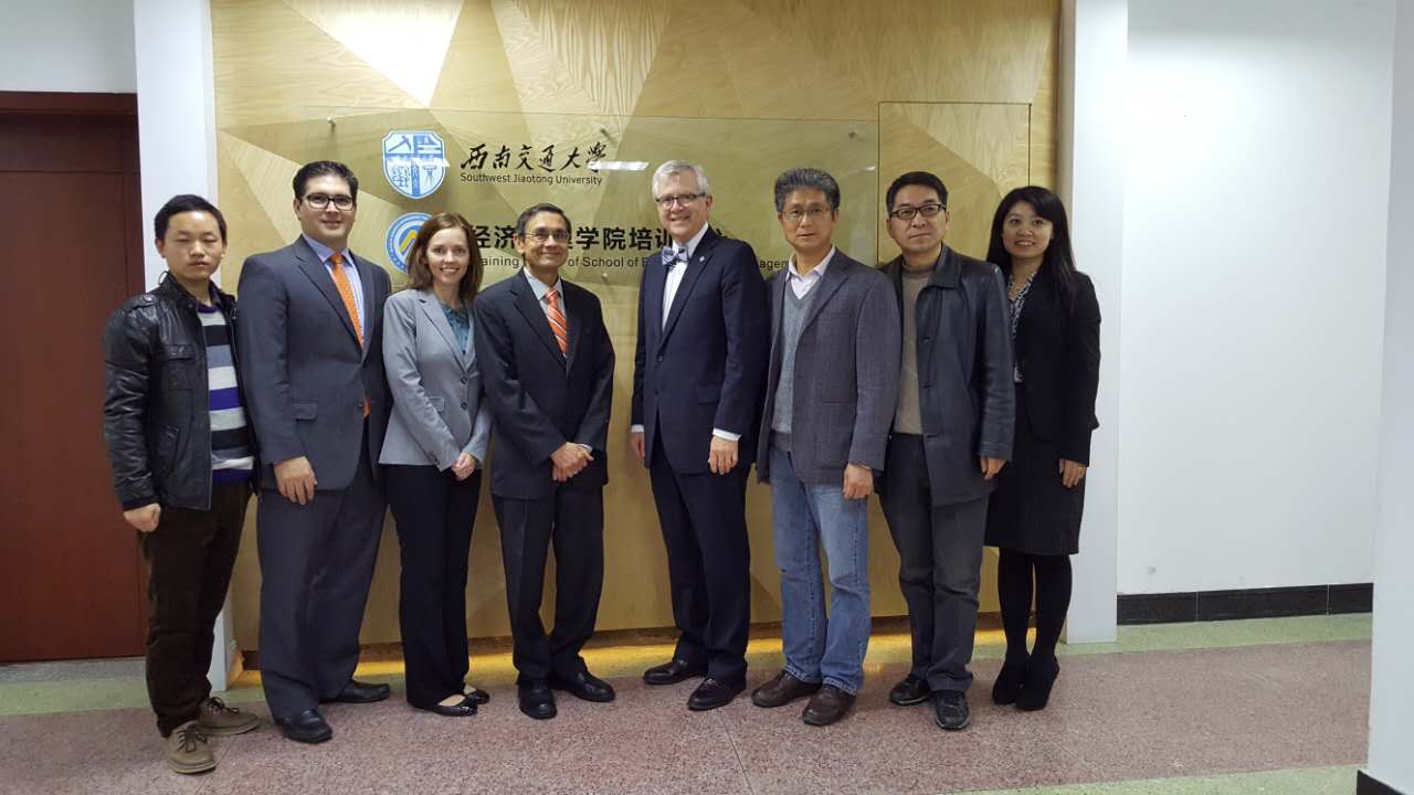 12月3日下午,美国俄克拉荷马州立大学(Oklahoma State University, OSU)SPEARS商学院院长Ken Eastman教授、主管研究生教学副院长Ramesh Sharda教授、主管本科教学副院长Karen Flaherty教授、国际推广中心主任José Sagarnaga博士及OSU中国项目发展主任Vivian Wang女士一行访问我院。我院副院长朱宏泉教授、研究生教育中心主任袁红平副教授、专业学位教育中心谭德庆教授及教育培训中心主任罗伟明老师参加了会谈。