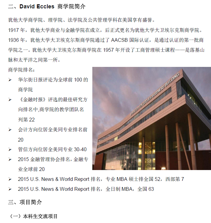 美国犹他大学本科生交流项目及硕士1+1项目简介
