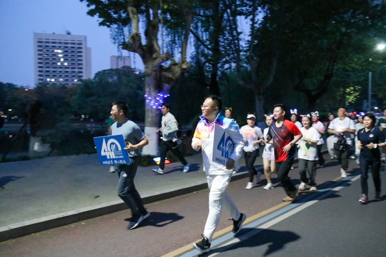 建院四十周年之际,一场旨在增进院友与母校纽带、强化院友互动、提升团队协作精神的“我和院友‘e’起跑——荧光夜跑”活动在九里校区内热烈展开。学院党委书记郭强、院长韩科、党委副书记余小英、党委副书记、纪委书记晏理斌、团委书记贾佳、综合事务办公室副主任张笑芸出席了本次活动,学院100余名院友、师生参与其中。