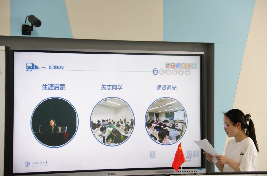 首先,班长卢奕带大家一起回望班级的旅途站点,总结班级系列活动情况,回顾班级成长经历。生涯启蒙站,招生就业处就业指导科科长陈曦轶为我们开展了新生生涯规划讲座;矢志向学站,预告本学期将开展生涯规划系列活动,班主任就专业分流、生涯规划等方面给予同学们建设性意见;逐贤追光站,老师以及学长、学姐为我们开展了一场专业分流经验分享活动,从学习方法、就业方向等方面为同学们做详细介绍。