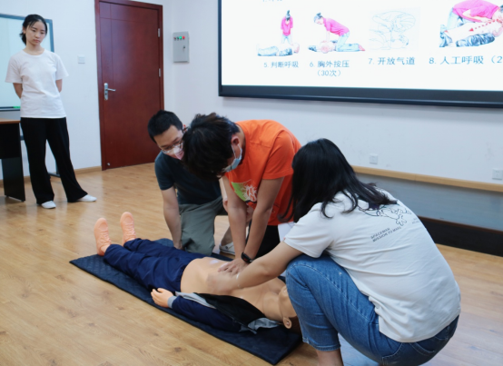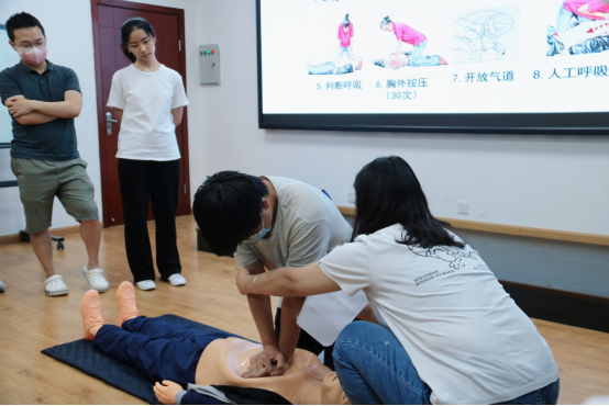 在最后的互动环节,喻谦让每一位团干部亲自实践心肺复苏流程。实践过程中,医学院党员服务先锋队的党员们对其中不规范的动作进行了指导纠正,让同学们在实践过程中掌握正确的急救方法。