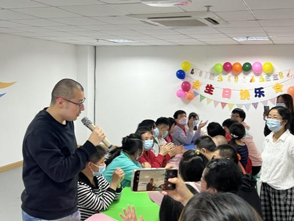 随后,老师们邀请台下的小朋友们送出自己的生日祝福给台上的寿星们,从小朋友和老师们的发言中,志愿者们也感受到了阳光家园浓厚的情谊温暖,他们就像家人一样在这里陪伴彼此。