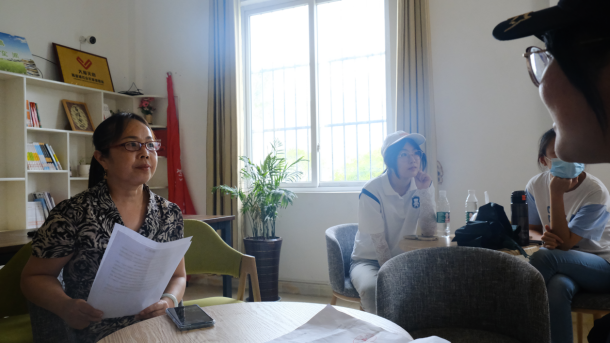 第二天上午,队员进一步深入基层,走进村委会,走到群众身边,在工作人员的带领下,走访了村里的老人,通过发放调查问卷的形式深入了解当地老年村民的健康情况、就医状况和对智慧医疗的接受程度。