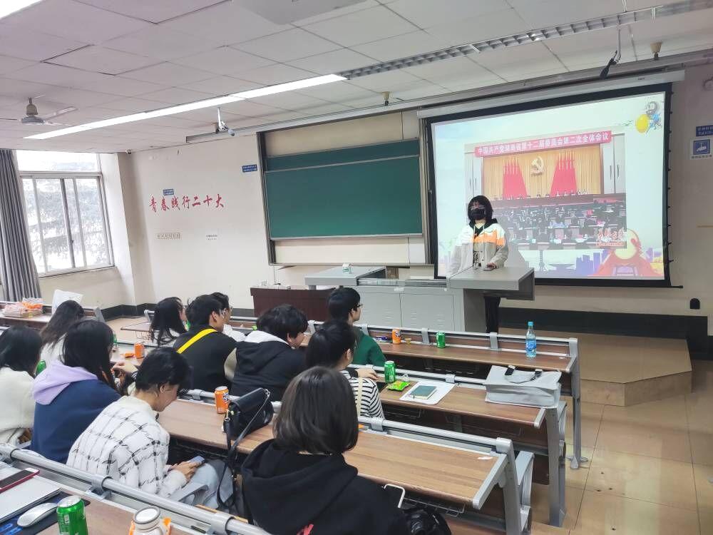 本科2021级经济1班于2023年3月16日上午在九里校区J4319开展了以“青春践行二十大”为主题的班会。参加此次班会的嘉宾有班导师郑亚非,辅导员莫代玉。