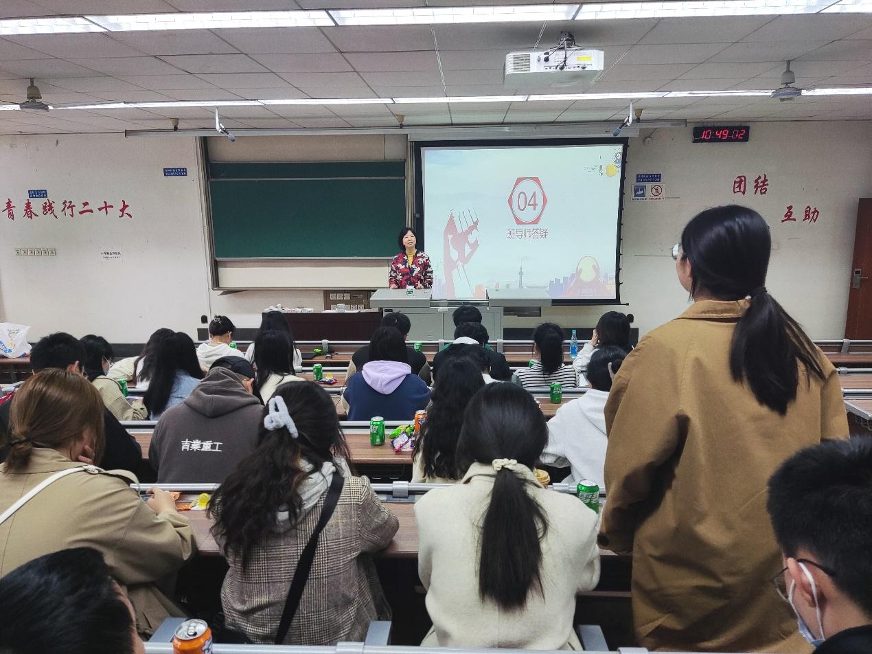 最后,班导师郑亚非对同学们会前提出的问题做了详细的解答。她就同学们的学习生活和未来规划提出了建议。她强调,同学们在注重自己学习的同时,也要多参加竞赛和志愿服务活动,学会劳逸结合,减少焦虑。对于未来的规划,她表示,要提早做好准备,丰富自己的经验,多了解读研和就业的信息、形势,找到适合自己的方向,制定计划表,脚踏实地向前迈进。