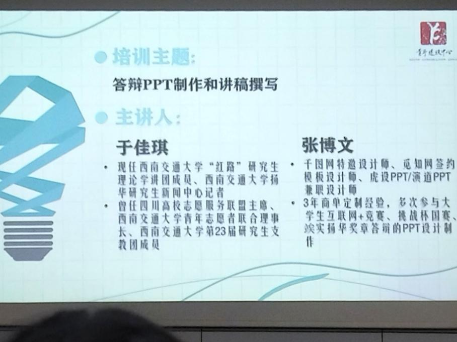 于J0215开展了“星火经英”计划第十一期第三次团干部培训。本次培训由我校于佳琪、张博文两位对ppt制作与答辩经验丰富的学生主讲,培训主题为“答辩PPT制作与讲稿撰写“,旨在培养同学们讲稿写作能力与ppt制作能力。