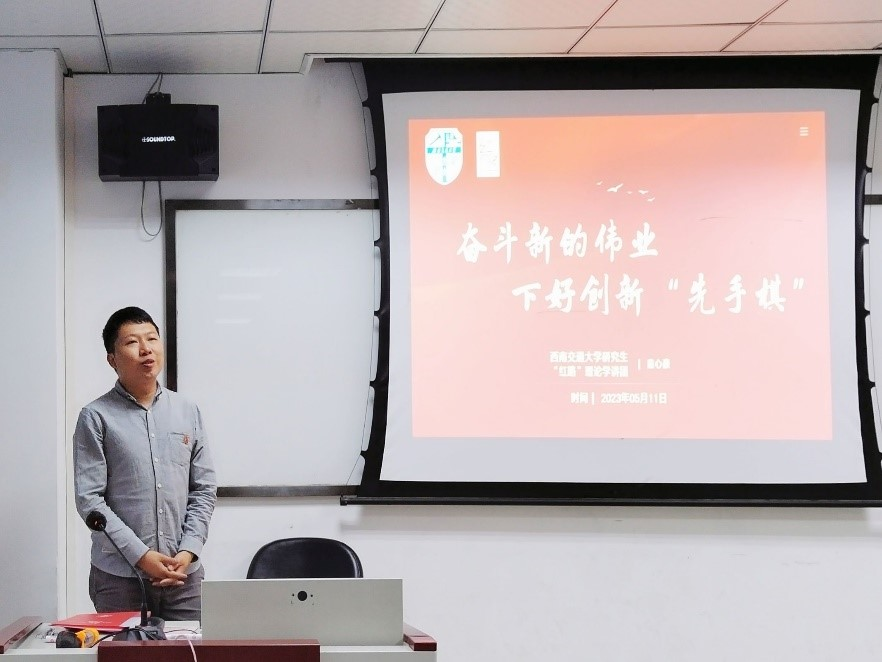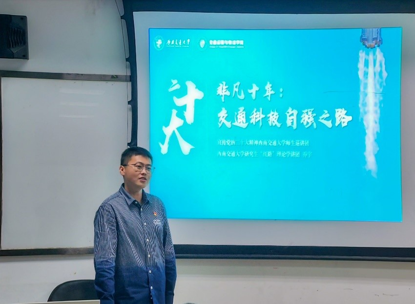 师生巡讲团成员、研究生“红路”理论学讲团副团长乔宇主讲,主题为“非凡十年,交通科技自强之路”。本次培训旨在帮助同学们立足新时代,了解当代“交通人”的使命担当,发扬创新精神。
