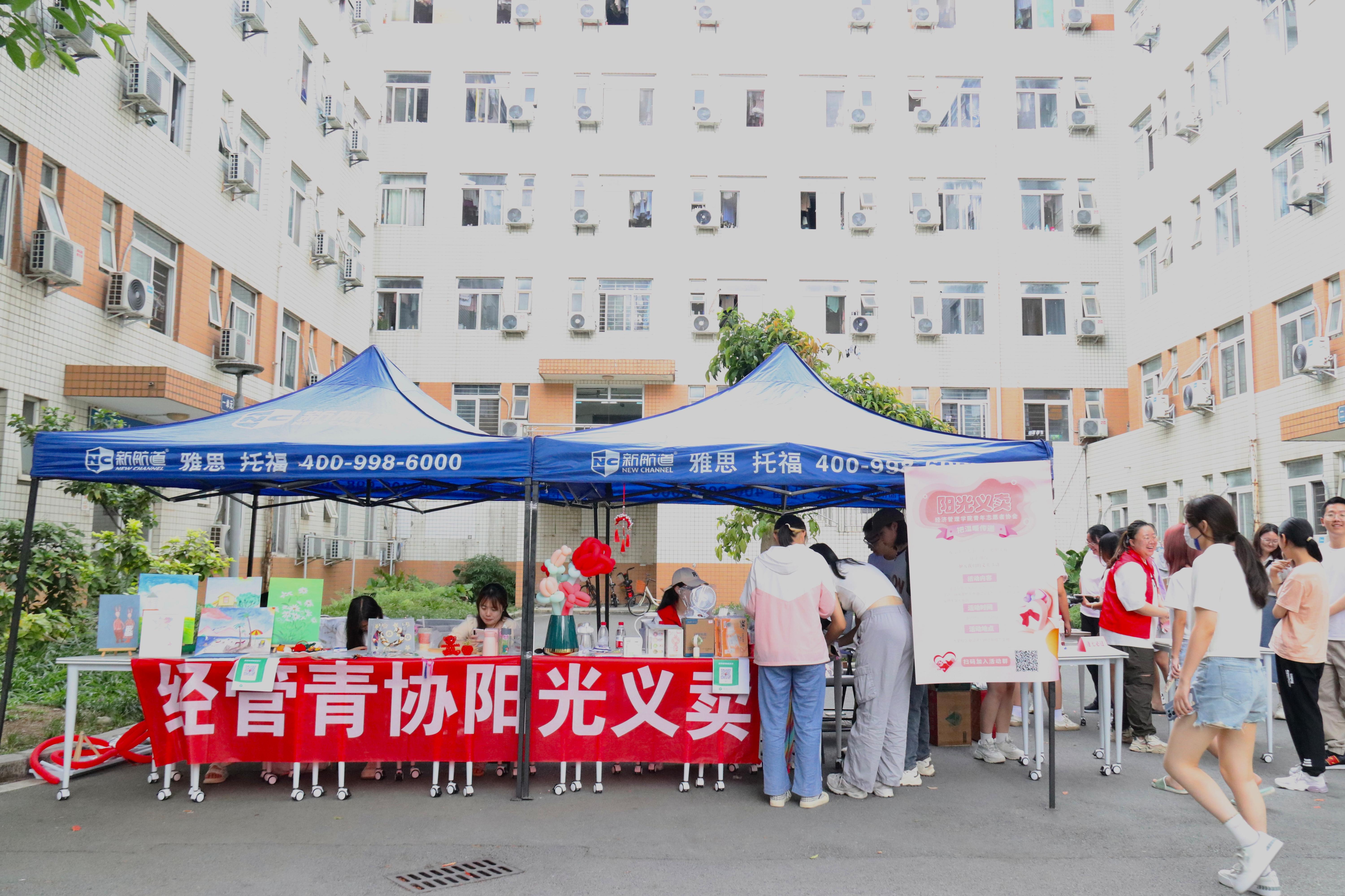 青年志愿者协会(以下统称经管青协)于5月20日下午九里校区眷诚斋13栋1号楼下开展了2023年阳光义卖公益活动。