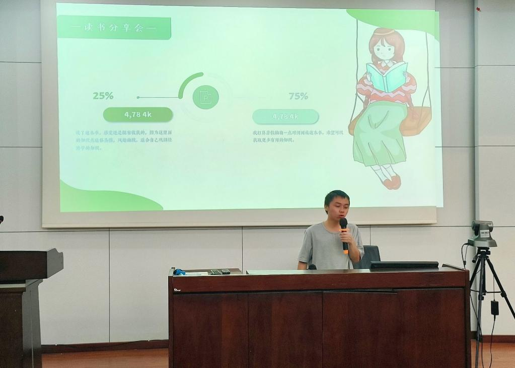 之后最后一位小组代表雷博超同学进行了读书分享,他聚焦于书中所讲的沉没成本,讲述了自己的理解与感悟。雷博超以如何实现人生目标为例,生动地解释了成本和沉没成本的概念,为接下来对沉没成本的进一步阐述做好铺垫。接着雷博超指出沉没成本并不是成本,假设性营造了一个恋爱中的成本计算案例,幽默地为同学们讲解出其中的经济学原理。最后雷博超讲道:我们要在沉没成本中重新衡量自己能获得的价值,全面考虑得失,充分尊重自己的感受,选择自己想选择的路。