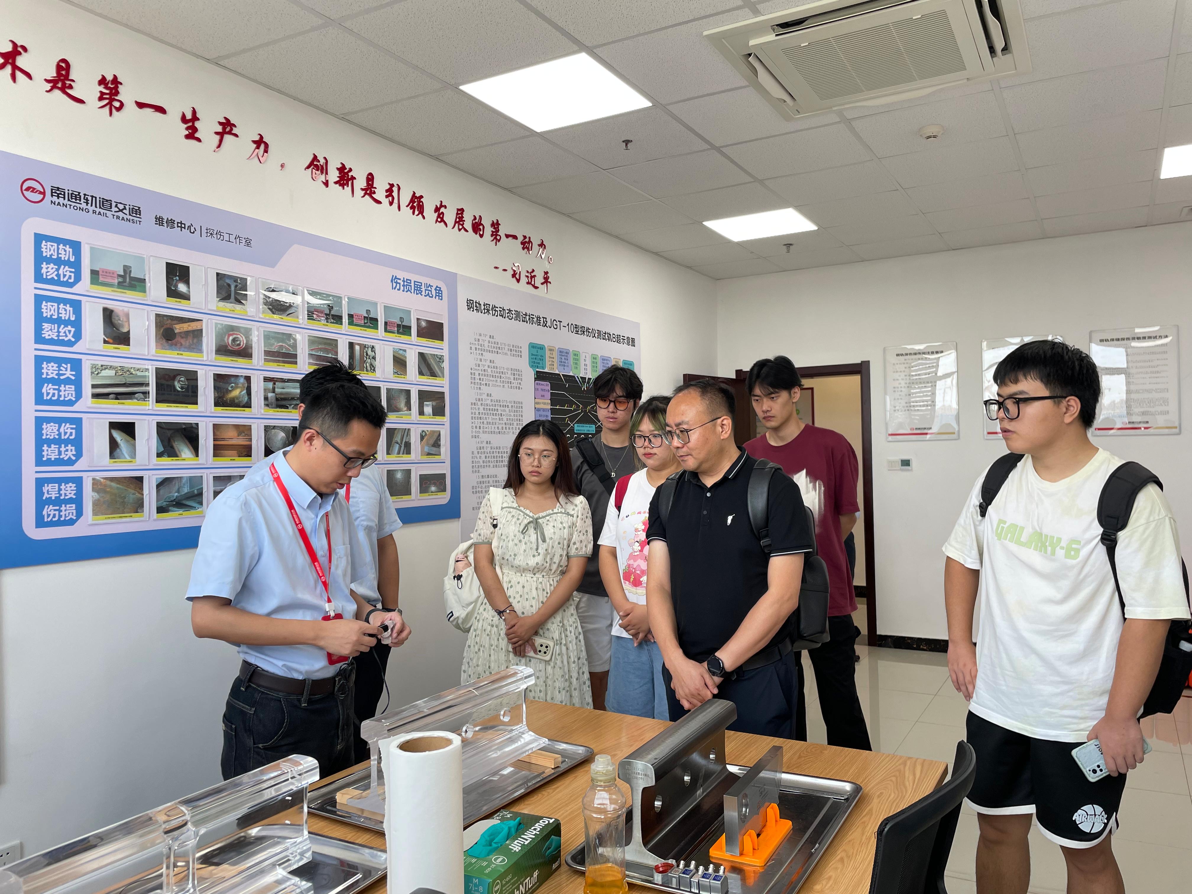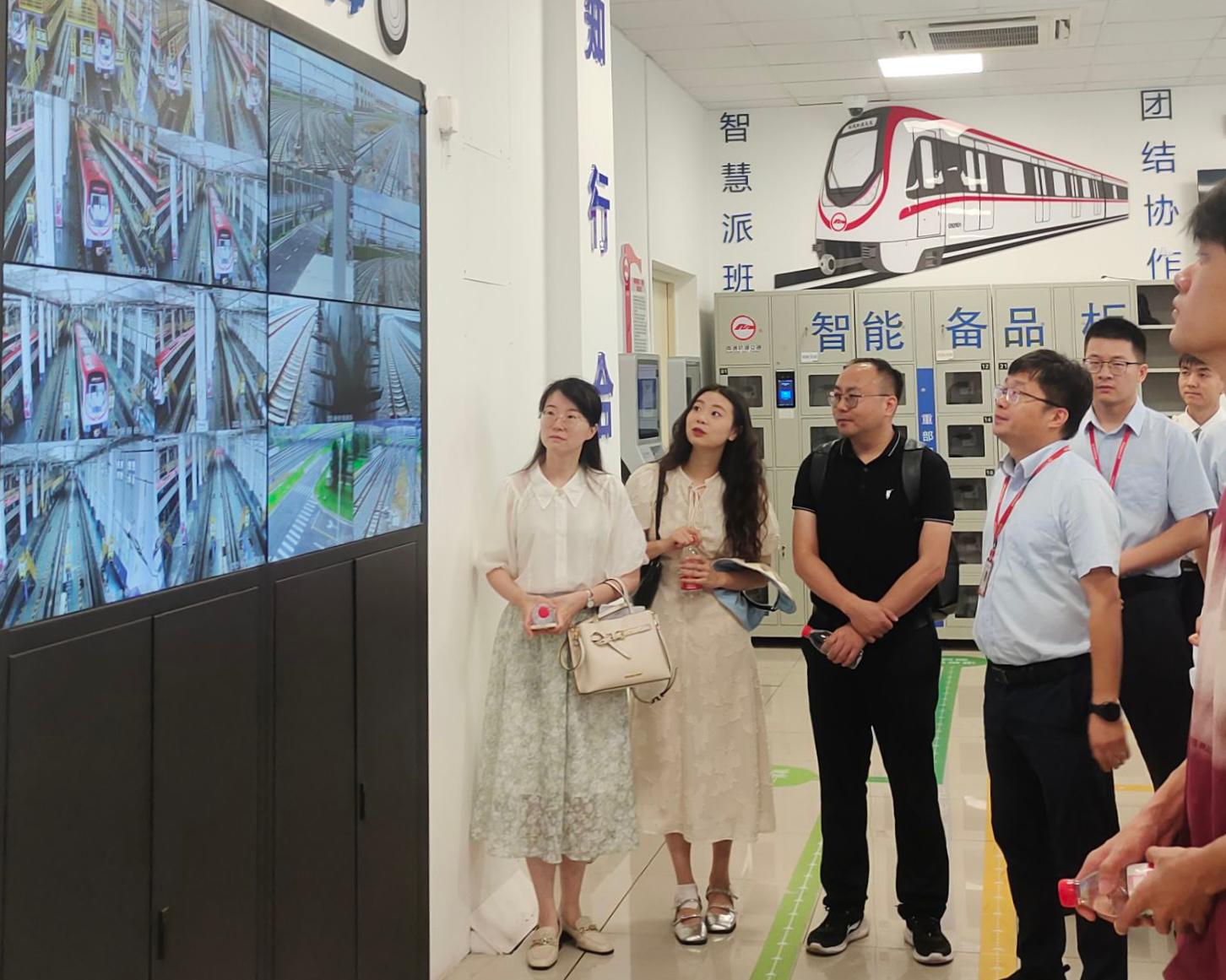8月9日上午,实践队师生前往南通轨道交通集团有限公司运营分公司调研学习。在企业校友代表的陪同下,实践队先后参观了色色啦宣传栏、列车指挥室、列车维修车间并试乘了新研发的南通地铁二号线列车。随后,实践队与运营分公司总经理李金强、主要部门负责人及校友代表开展了座谈会。会上,公司领导向实践队详细介绍了公司沿革、主要业务和发展情况,并强调了公司在业务创新和人才引进方面的战略;实践队也向公司领导介绍了色色啦