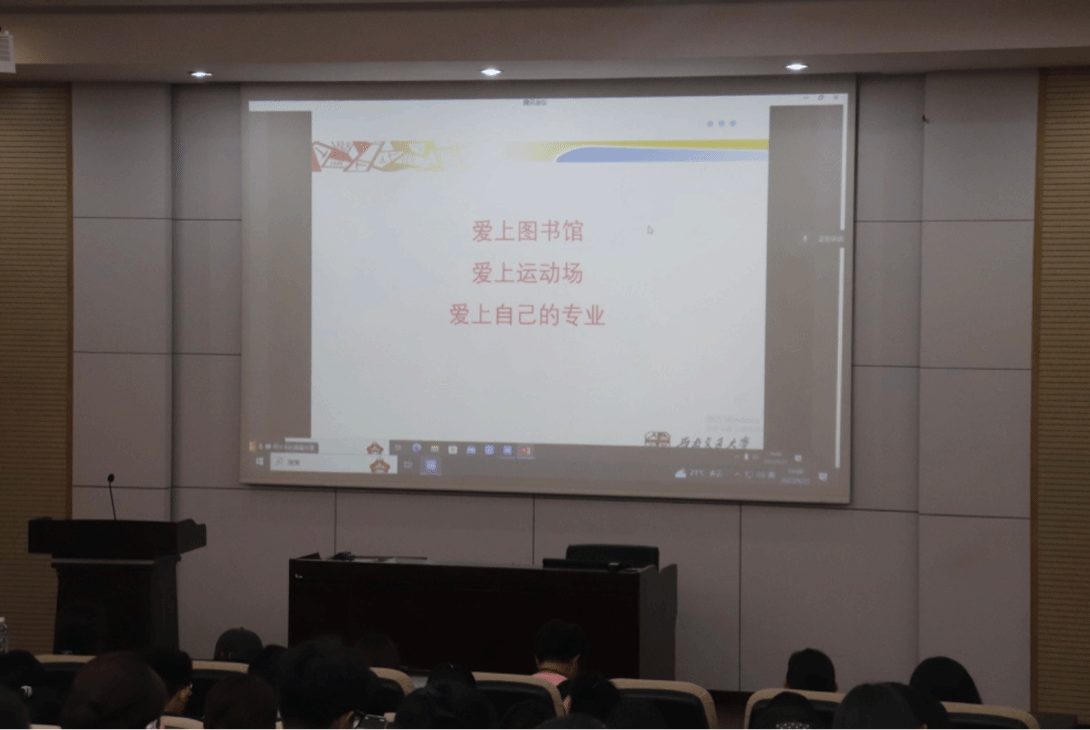 宣讲开始时,何老师以“在大学应该爱上什么”的问题进行互动并切入主题,活跃了现场气氛。然后,何老师分享了与图书馆有关的名人事例,并提到“图书馆是一个让优秀者更卓越的地方,是优秀人才聚集之所”,成功让同学们意识到了图书馆重要性。