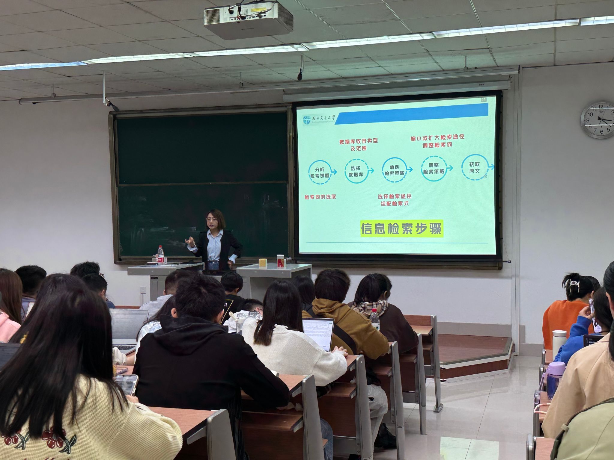 图书馆李颖老师,为2023级研究生新生开展了一场图书馆数据库应用培训讲座。参加本次培训的还有研究生辅导员贺小轩和李勇老师。