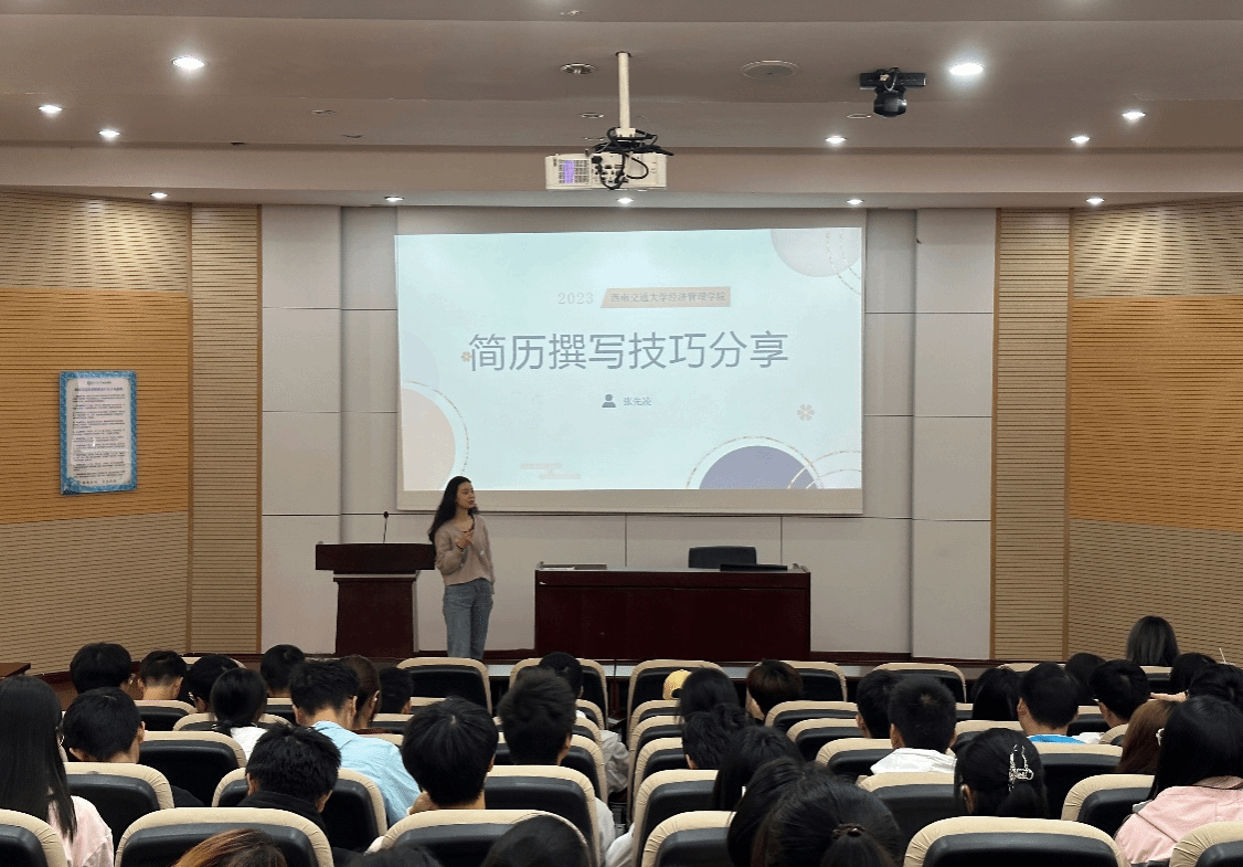 本科2023级举行了简历制作与面试指导讲座。张先凌老师为大家逐一讲解了制作简历的基本原则、内容取舍、排版样式等问题,使同学们对如何写出一份好简历有了更清晰的认识。苏扬老师为同学们介绍了有关面试的内容,将求职时需要考虑的因素和维度逐一展列,使同学们了解面试求职的过程,明晰内心的选择。