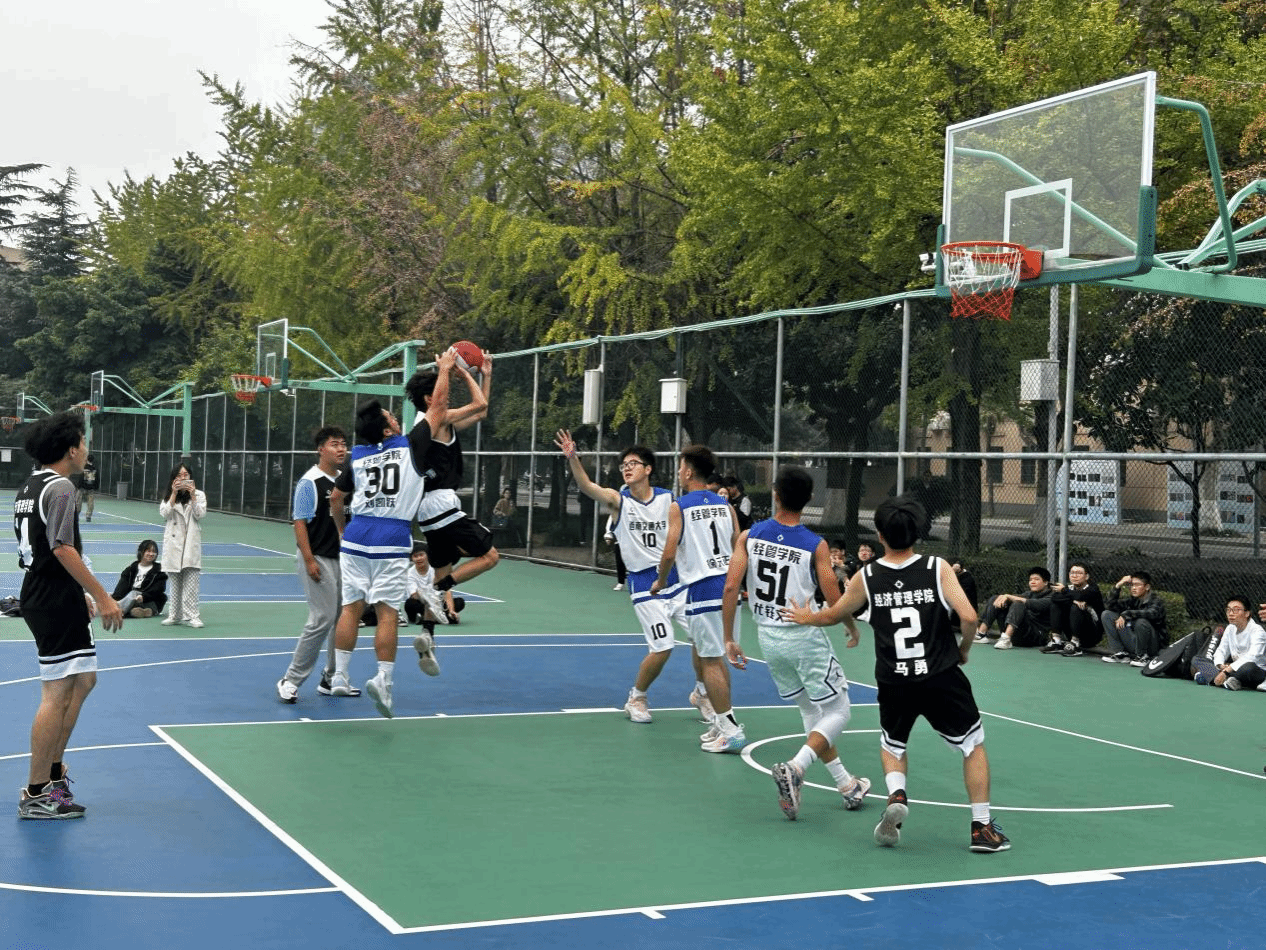 九里校区篮球场举行。球员们在赛场上挥洒汗水,释放青春光芒,展现了经管学子昂扬向上的精神风貌。本次篮球赛增强了班集体凝聚力,提升了新生融入感,将体育运动融入日常的学习生活。