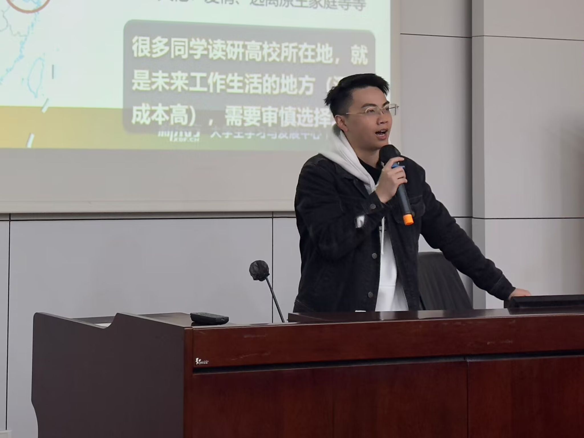 各专业的考研难度、就业前景以及发展趋势。他鼓励同学们要结合自己的兴趣和职业规划,选择适合自己的专业方向。在择校指导环节,叶果提醒同学们要充分考虑学校的综合实力、学科优势、师资力量以及地理位置等因素。同时,他还建议同学们多参加模拟考试等活动,以便更好地了解自己的实力和水平,为择校提供更加科学的依据。最后,叶果就考研复习安排进行了详细指导。他建议同学们要制定合理的复习计划,注重基础知识的巩固和拓展,加强模拟练习和真题演练,不断提高自己的应试能力。