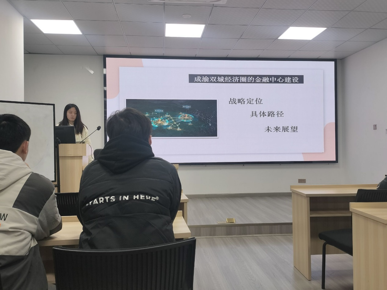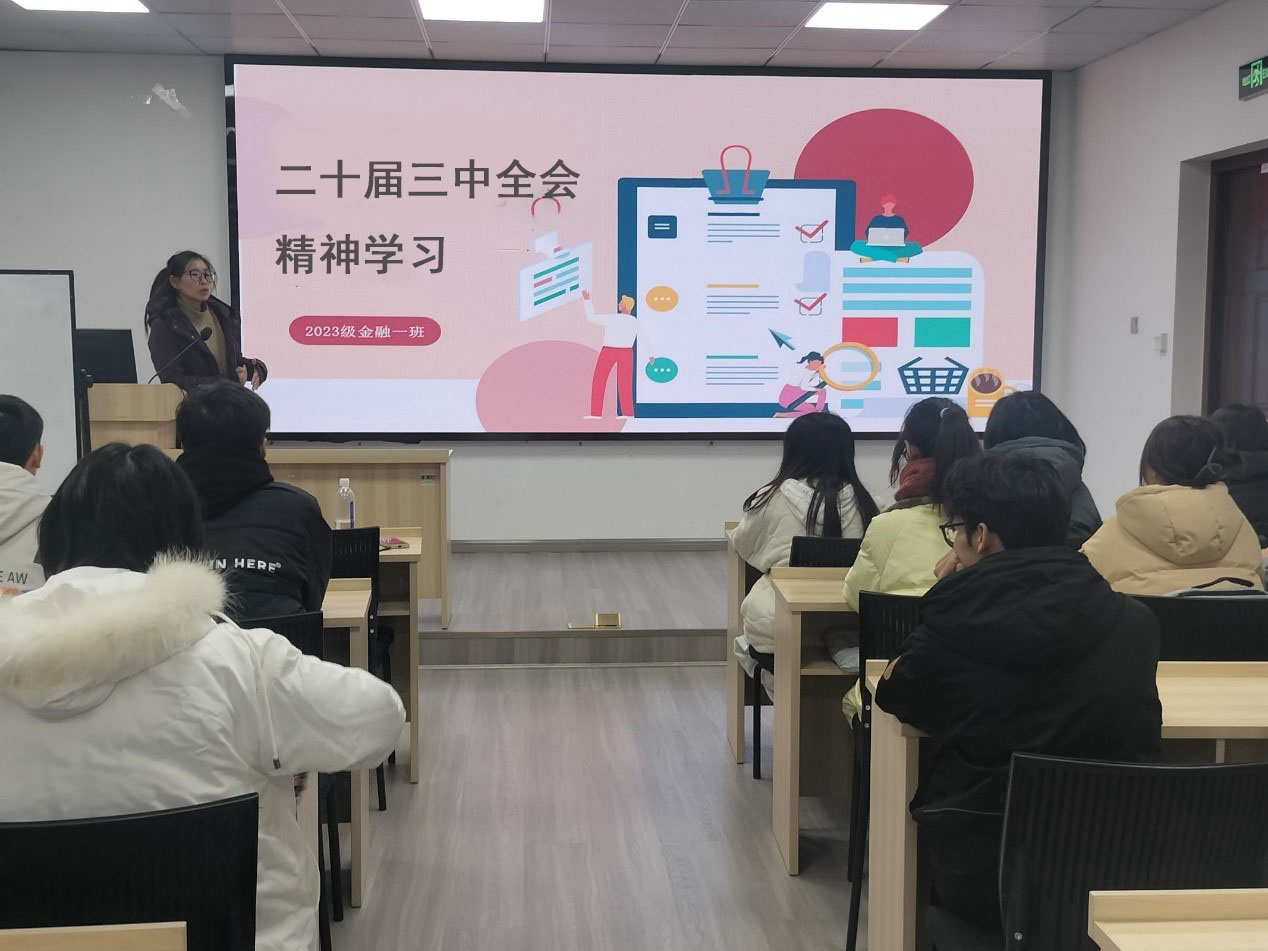 金融 2023-01 班成功开展了一次主题为“学习党的二十届三中全会精神”的团课活动。学院团委书记贾佳老师带领同学们学习了党的二十届三中全会精神,同学们围绕推动金融高水平对外开放、成渝双城经济圈金融中心建设等方面进行了深入学习和讨论。