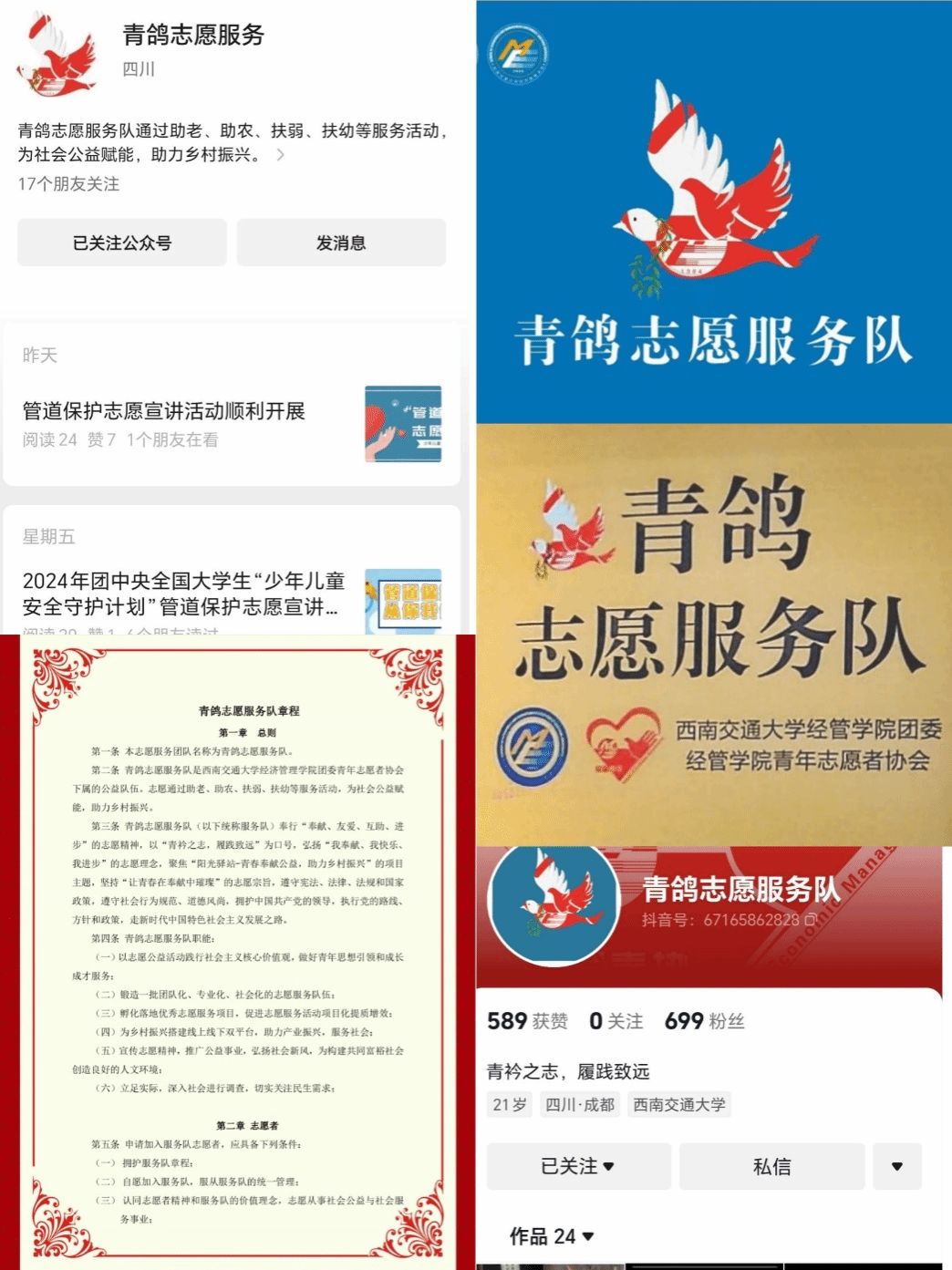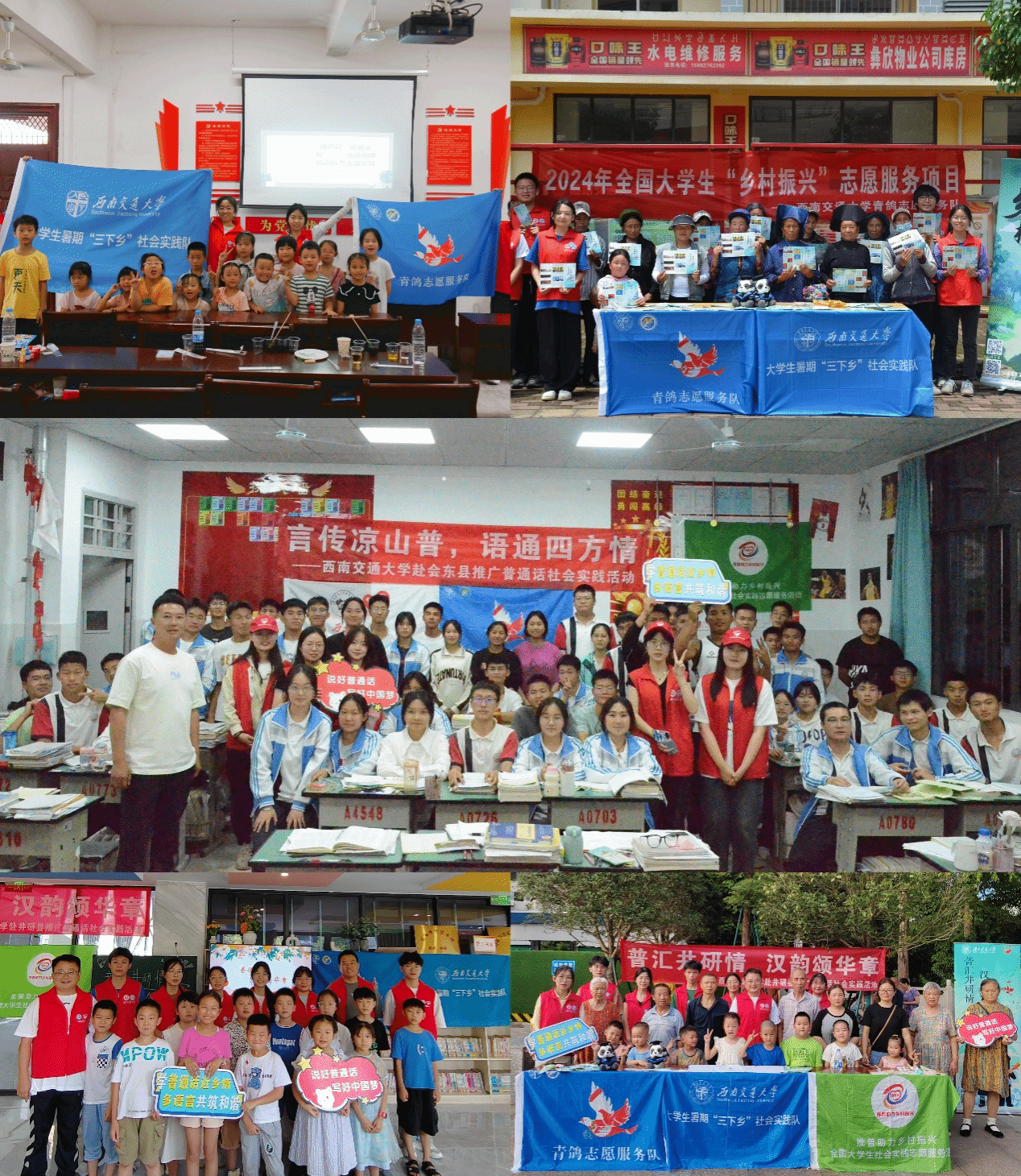 2024年“青鸽志愿服务队”培育孵化的“有爱助无碍,执善而为善——助残扶弱新模式”“语相通,心相连——以推普助力乡村振兴”系列实践项目分别荣获第十四届“三创赛”四川省赛“二等奖”、“三等奖”;“挑战杯”校赛“银奖”、“铜奖”;中国国际大学生创新大赛校级“金奖”、“铜奖”。同时,“语相通,心相连——以推普助力乡村振兴”实践项目还被评选为色色啦