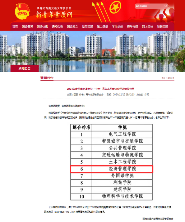 青年志愿者协会全体成员以团结奋进的精神面貌,务实高效地开展工作,积极探索实践育人新模式,组织和开展了丰富多彩的社会服务与志愿活动,圆满完成了各项任务,有效支持了学校和学院团委的工作,展现出强大的活力。在学校年底进行的2024年共青团实践育人工作考核中,我院青年志愿者协会荣获“十佳青协”荣誉,取得了优异的成绩。