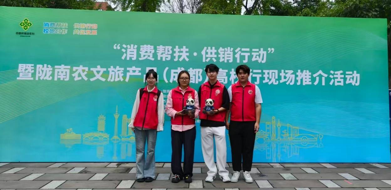 e脉相通社会实践队全力协助由校团委牵头组织的陇南市成功举办“消费帮扶、供销行动”暨陇南农文旅产品(成都)高校行现场推介活动。实践队员们运用新媒体技术,通过抖音直播方式向成都高校学生和社会消费者推广陇南优质特色产品。