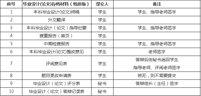 表1 毕业设计(论文)存档材料(纸质版)目录