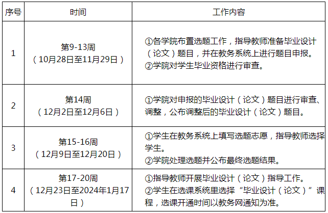 1、本次选题、开题工作具体事项时间节点为: