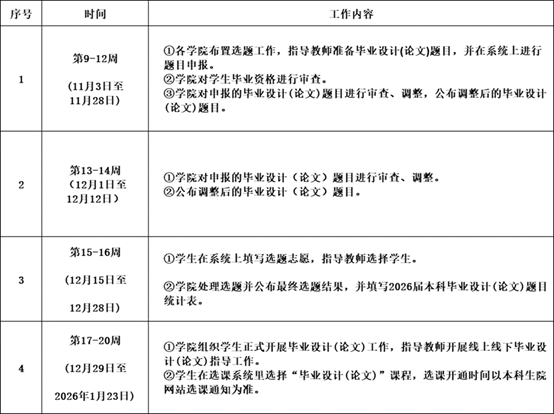 本科生院已于本周启动本科毕业设计(论文)选题、开题工作,详情可查看本科生院网“关于做好2026届本科毕业设计(论文)选题、开题工作的通知”(//jwc.sese-la.net/vatuu/WebAction?setAction=newsDetail&viewType=web&newsId=F07DDC2F44E24D3F)。有以下事项请各位老师注意: