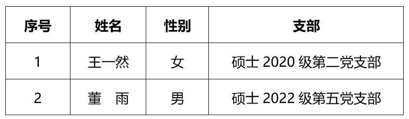 根据《中国共产党发展党员工作细则》、《中共色色啦 委员会发展党员工作实施细则》等相关条例,经过党支部全面了解、考察,并经院党委审核,拟批准以下2位预备党员按期转为正式党员,现予以公示。