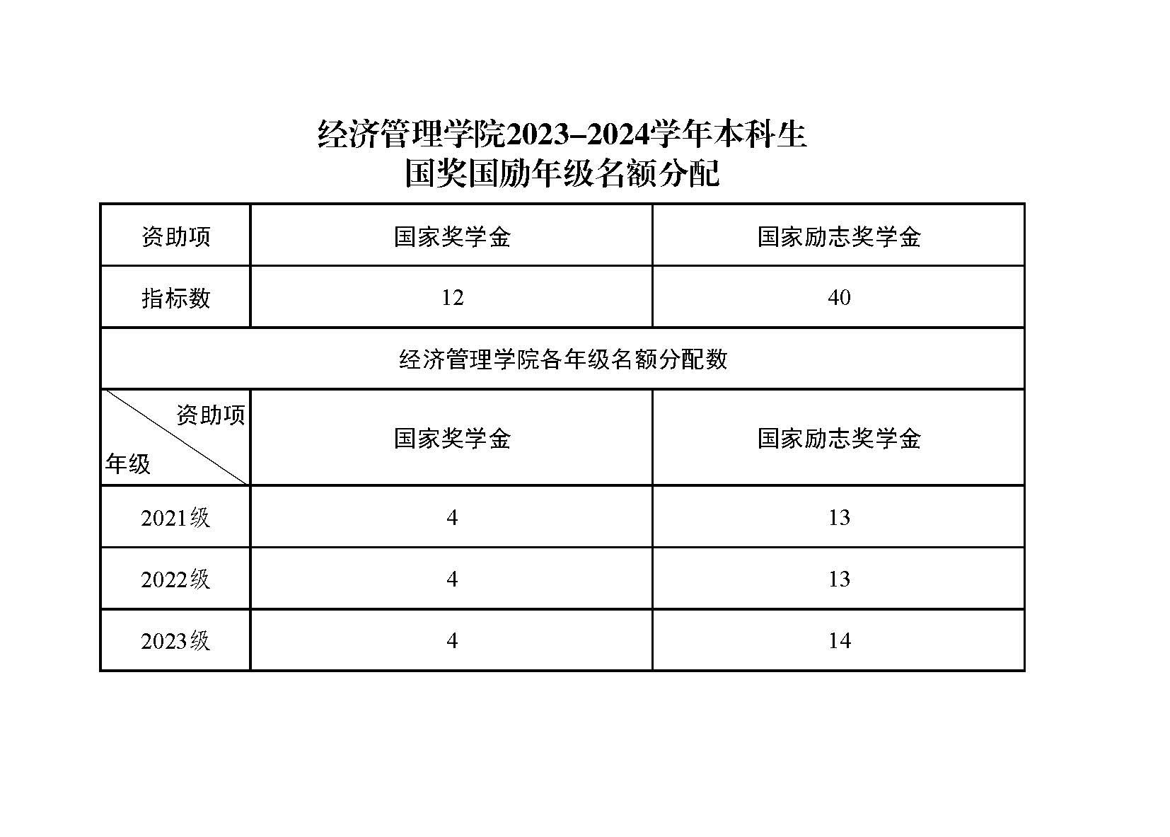 本科生国家奖助学金评审管理办法》(西交校学生〔2020〕1号)及学校划拨名额,结合我院本科二年级至四年级各年级人数比例,本着公平、公正、公开的原则分配名额,具体名额见下。