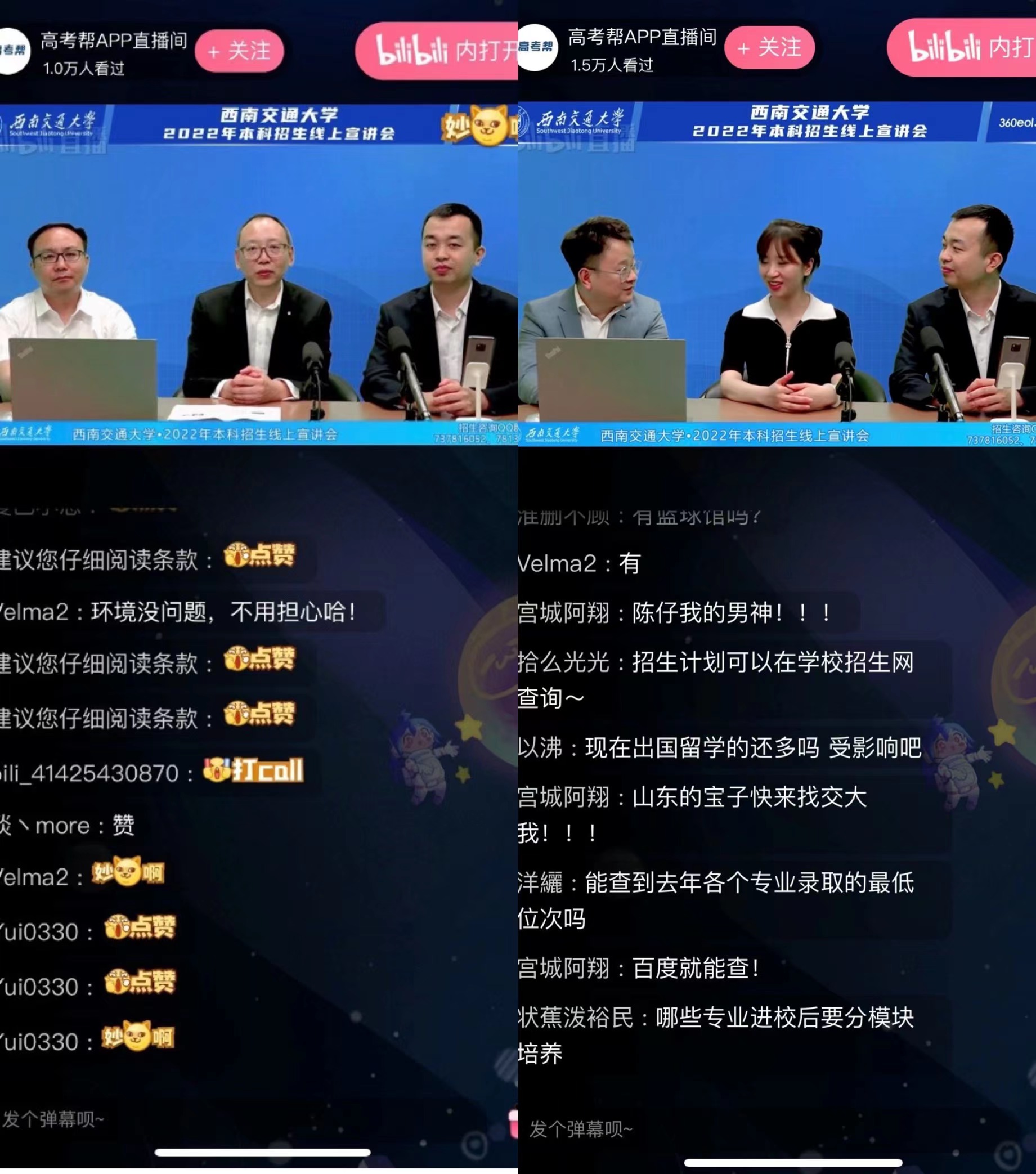 本次线上直播吸引了全国各地考生的关注,最高峰同时在线1.7万人,直播获得了考生及家长的点赞和好评。