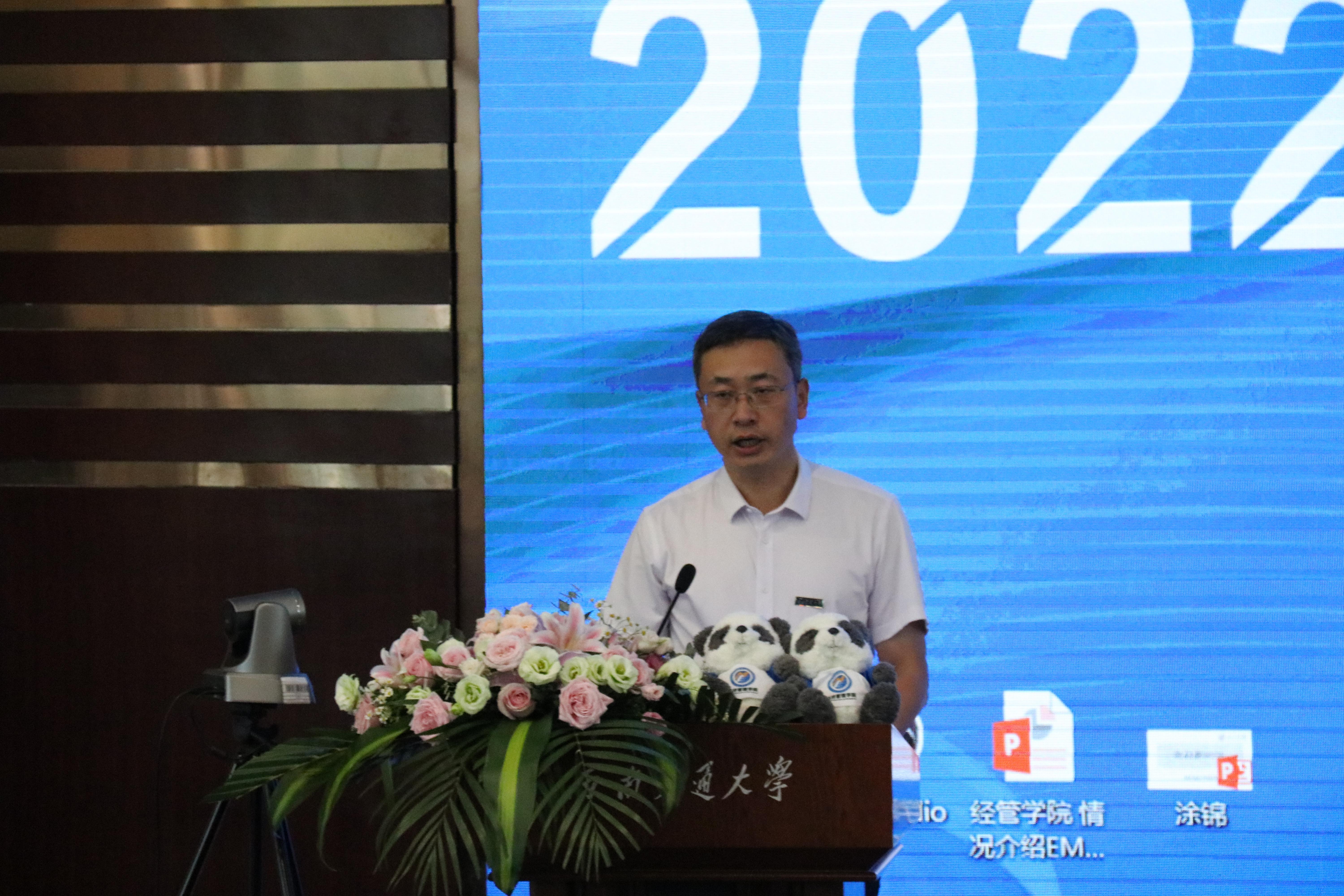党委书记王斌、执行院长郭强,教师代表黄登仕、涂锦、叶勇、官振中、高增安、陈有真,学院工会主席兼综合事务办公室主任晏理斌,学院党委党务秘书李洪辉,学院专业学位教育中心主任李海波、副主任何鹏、副主任诸波,学院国内合作与校友事务中心副主任张笑芸,学院专业学位教育中心办公室主任陈静,学院综合事务办公室岳容华,2022级EMBA班主任黄金玲、宋洁,学院专业学位教育中心袁小容、姚霁芸以及往届EMBA校友代表等欢聚一堂,共启新程。