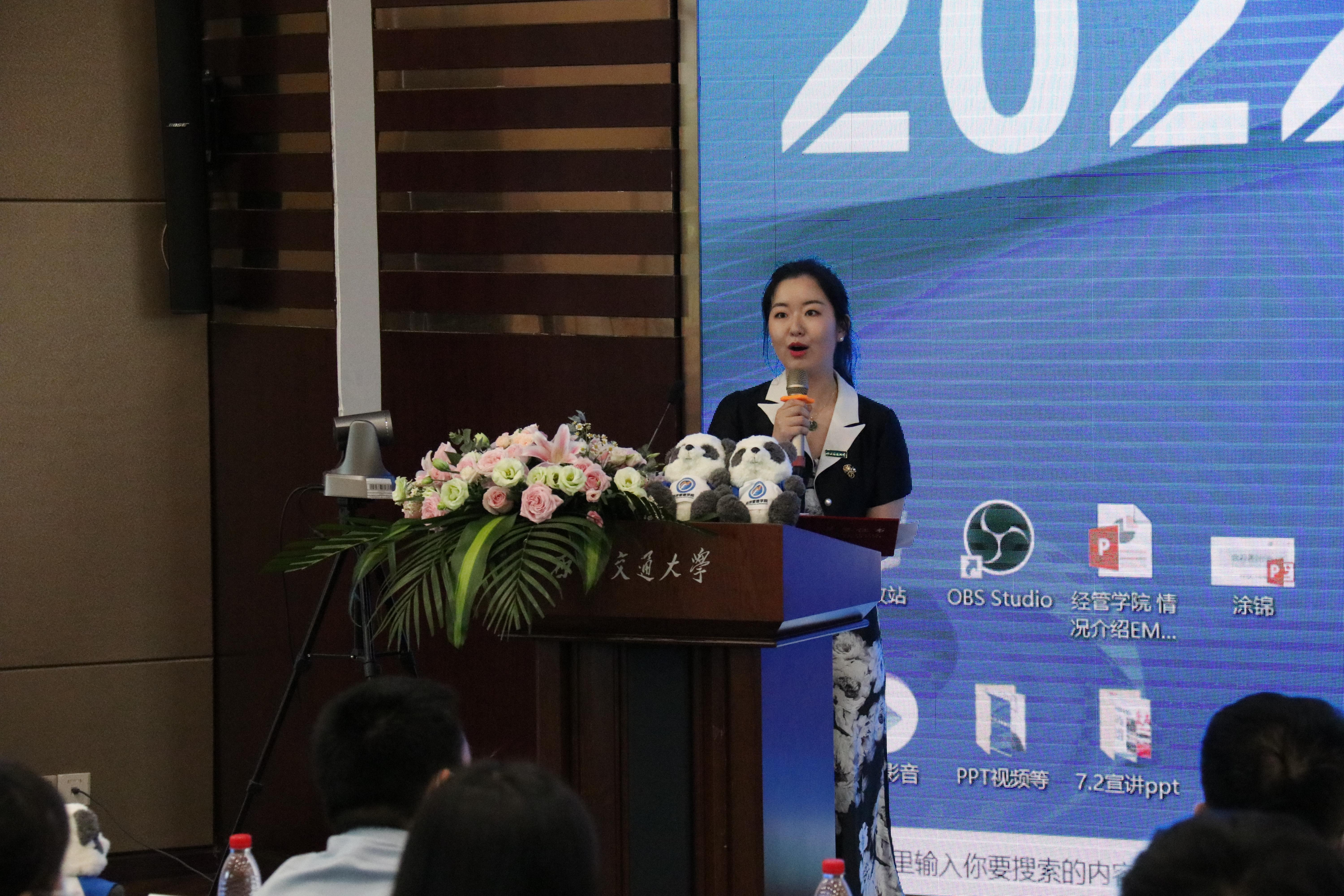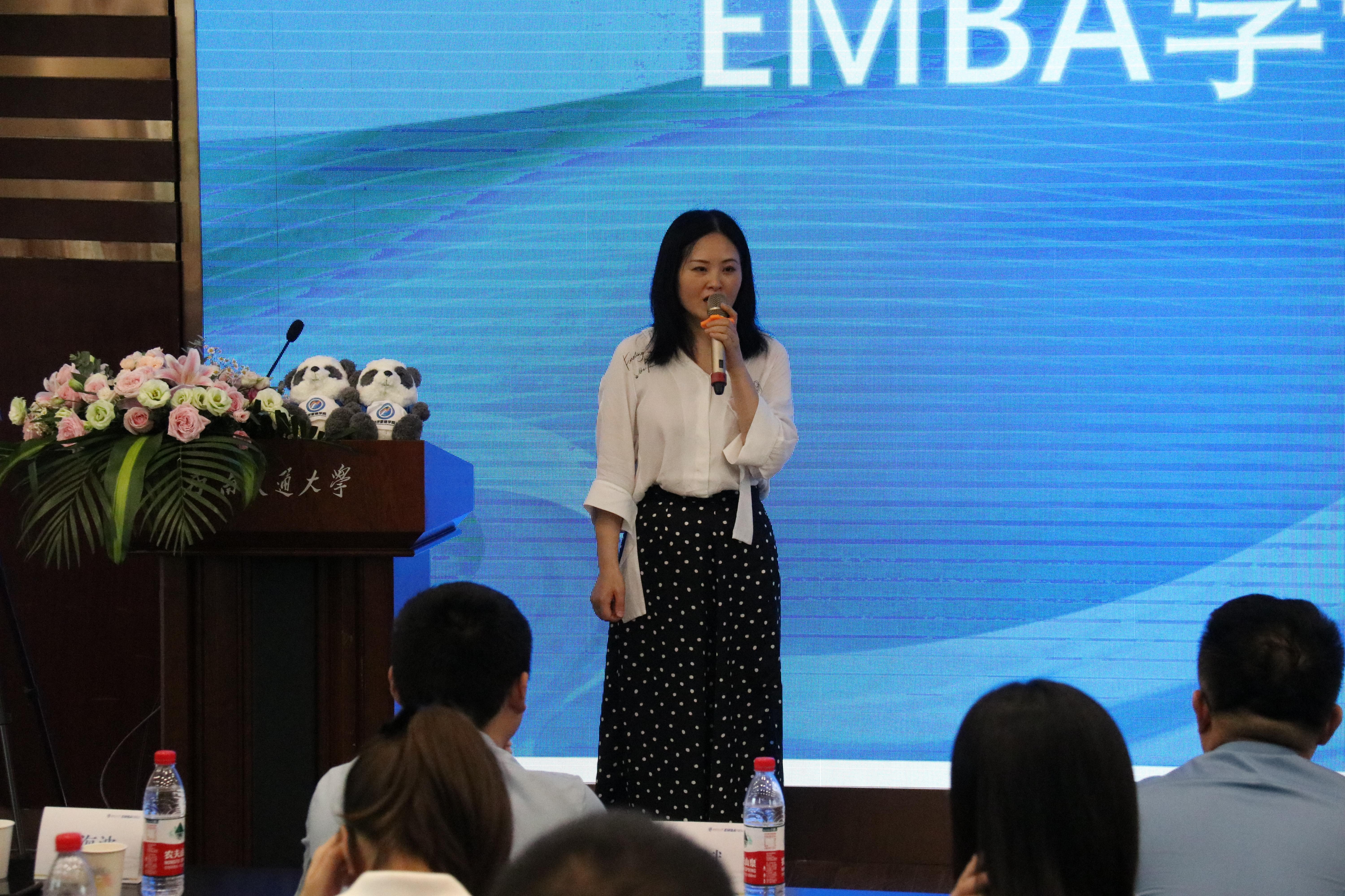 的情况向大家作了介绍,同时对EMBA项目基本情况以及学院特色发展的思考等进行了说明。他重点介绍了EMBA的课程特色,即针对高级管理人员在职学习的特点,采用课堂讲授、案例研讨、移动课堂、企业参访、名家讲座、公益论坛等多种教学方式,培养具有国际视野、东方智慧、领导能力、社会责任的产业领袖。