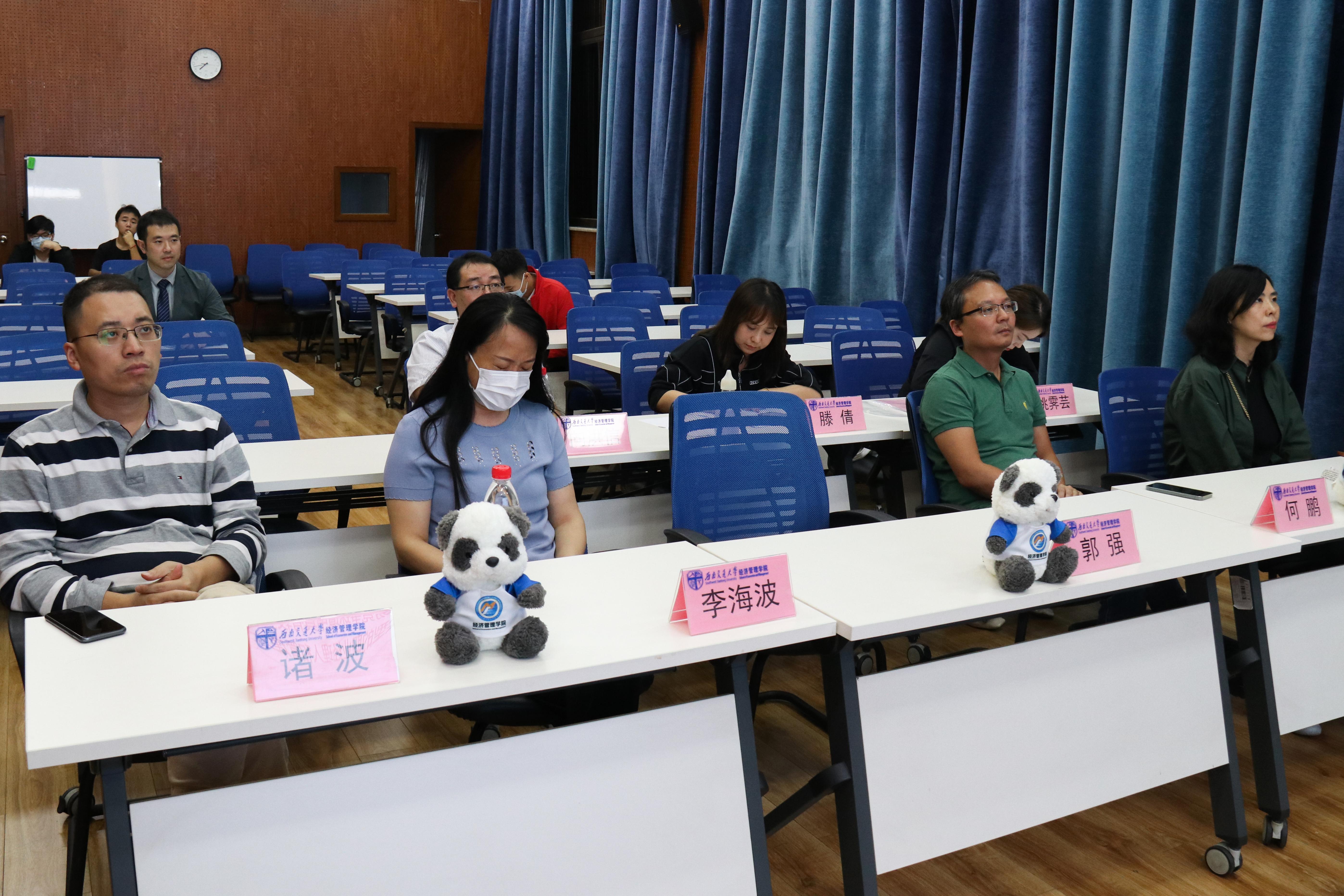 执行院长郭强,学院专业学位教育中心主任李海波,副主任诸波、何鹏,办公室主任陈静,专业学位教育中心MBA项目招生主管向洪信、滕倩,MEM、EMBA项目招生主管姚霁芸以及2022级新生代表袁艺菲、谭明锐。
