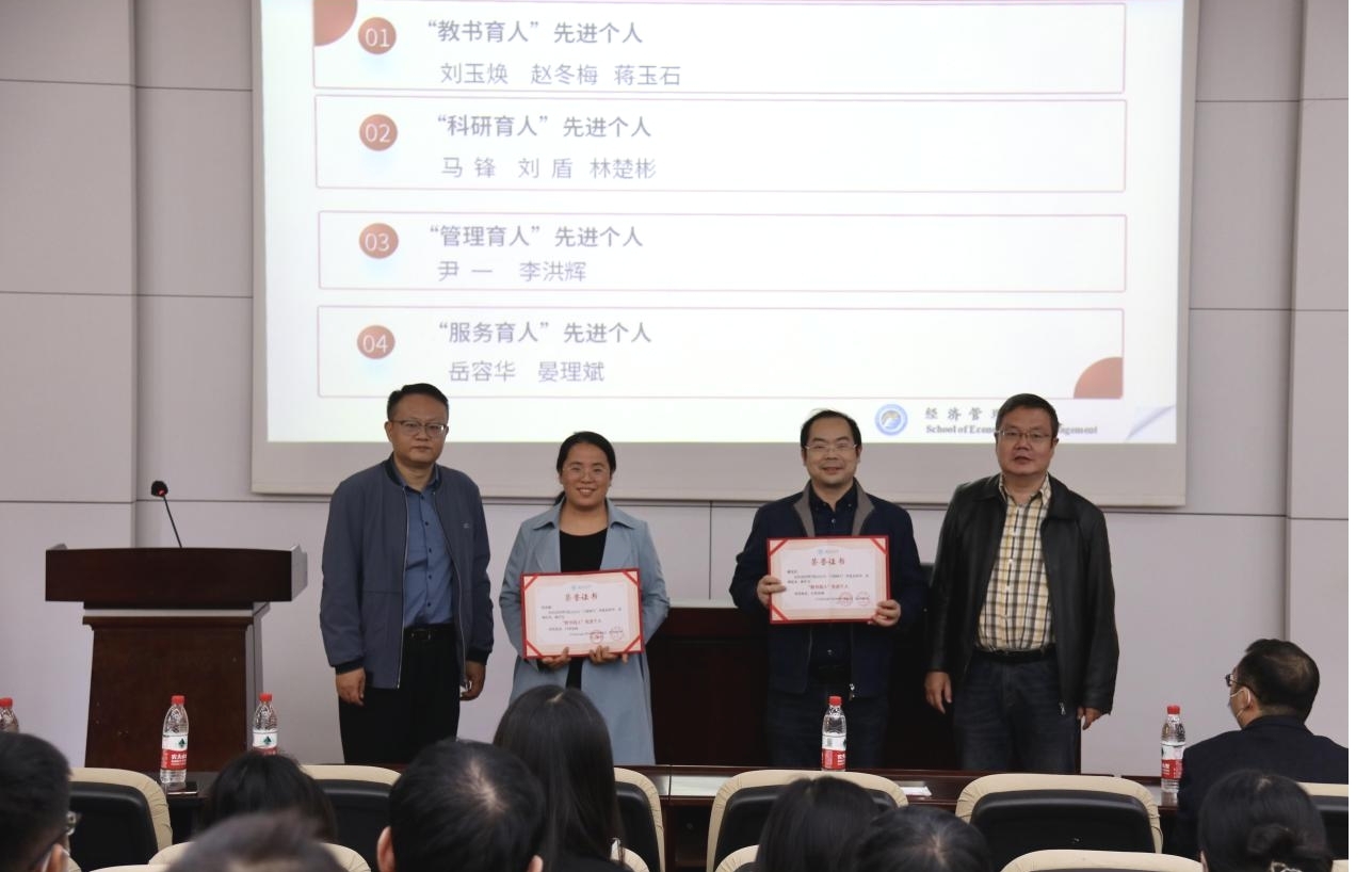“立德树人”先进集体和先进个人评奖办法》,决定每2年开展一次“立德树人”先进集体和先进个人评选表彰。2022年,经集体或个人申报、学院审核、申报集体和个人答辩、专家小组评审和学院党委会议、党政联席会议审定,共评选出“科研育人”先进集体2个、“管理与服务”先进集体3个、“教书育人”先进个人3名、“科研育人”先进个人3名、“管理育人”先进个人2名、“服务育人”先进个人2名。王斌宣布了表彰名单,学院党政领导班子成员分别为获得表彰的先进集体和先进个人颁发了证书。王斌在主持会议中指出,希望获得表彰的集体和个人再接再厉,做出更多更大更好的成果,希望全院教职工以获得表彰的先进集体和先进个人为榜样,你追我赶,不断进取,积极投身教育事业,进一步增强使命感、责任感,齐心协力促进学院各项工作再上新台阶。