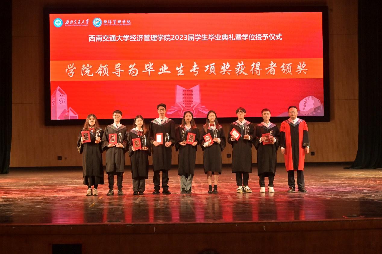 2023届本科毕业生专项奖表彰名单和2023年MBA、MEM优秀毕业生名单,并由学院党委书记王斌、院长杨平、执行院长郭强为他们颁发荣誉证书。