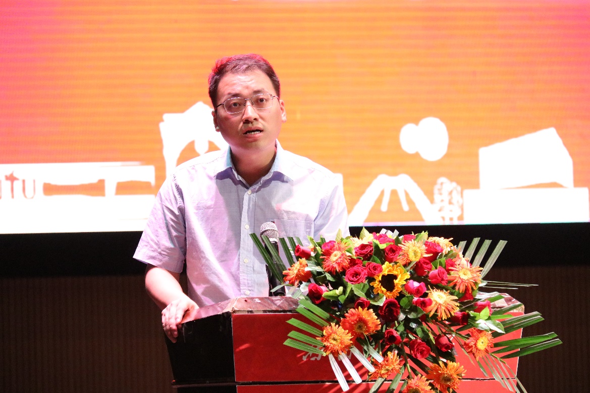 大会第四项,专业教师代表诸波发言。诸波老师结合我们现在所处的百年未有之大变局为同学们提出了三个努力方向:一是要学会学习,注重培养融会贯通的能力,努力成为一个跨学科人才;二是要与社会对话,自觉承担相应责任,学会处理人际关系;三是践行绿色生活,强身心并健体魄,保持健康绿色的生活基调。