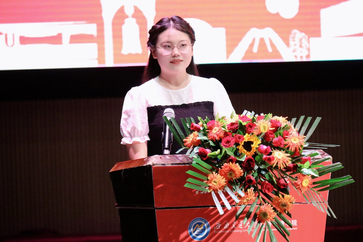 大会第六项,新生代表致辞。本科新生代表李欣纯表示“知是行之始,行是知之成”。她道出了交大学子的奋斗心声,认为在大学生活中,应当注重将理论知识与具体实践结合起来,做到知行合一,为日后投入到国家的建设中蓄力。