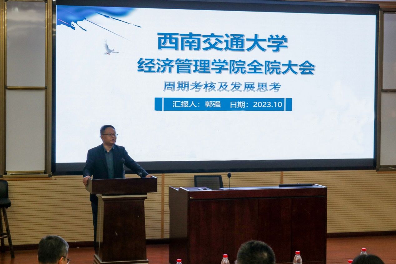 新一轮周期考核及发展思考”。他向老师们报告了新一轮周期目标考核的8项学科战略性指标和学院发展关键性指标,以及学院目前的发展现状,分析了与周期目标的差距,并从“加大人才引培力度、提升学术学科影响力,提高青年教师引培速度、改善教师队伍结构,强化核心课程建设、提高本研培养质量,加强顶层设计、优化学科布局,加强有组织科研、扩大学院影响力”等方面,对学院发展提出了深度思考。
