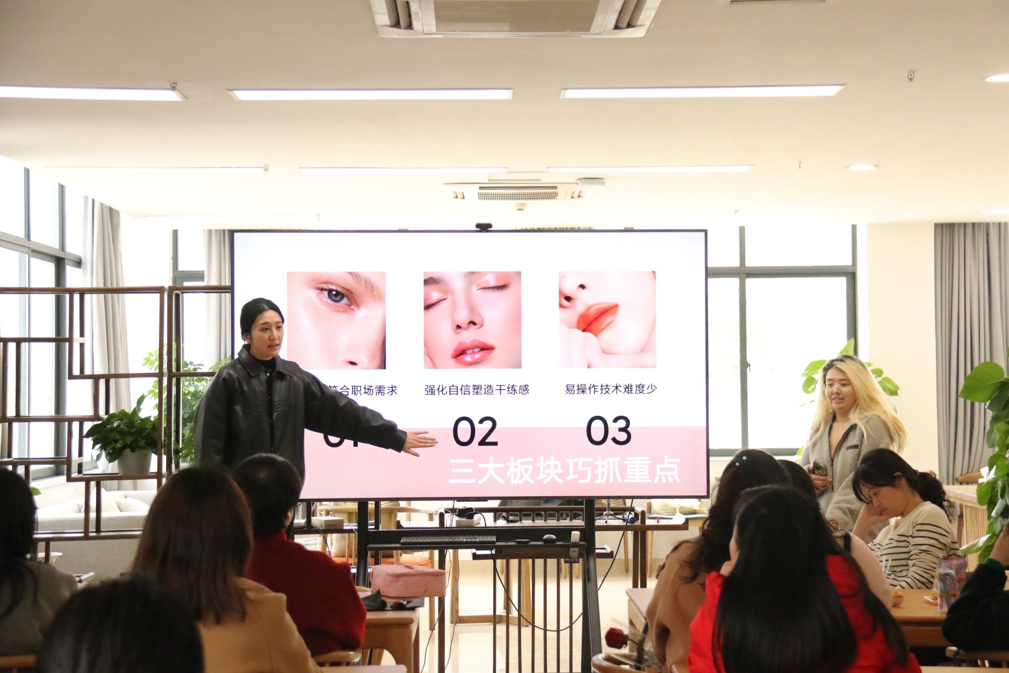 此次活动专门邀请了毕业于法国巴黎ITM化妆视觉学校、有欧盟认证彩妆造型师高旖旎老师,为各位女教工讲解化妆品的选择及化妆技巧,尤其是在繁忙的工作节奏中如何快速打造优雅通勤妆,既简洁自然,又符合职场要求,易操作且技术难度小,用最短的时间快速高效地提升气质,强化自信,展现完美的状态。