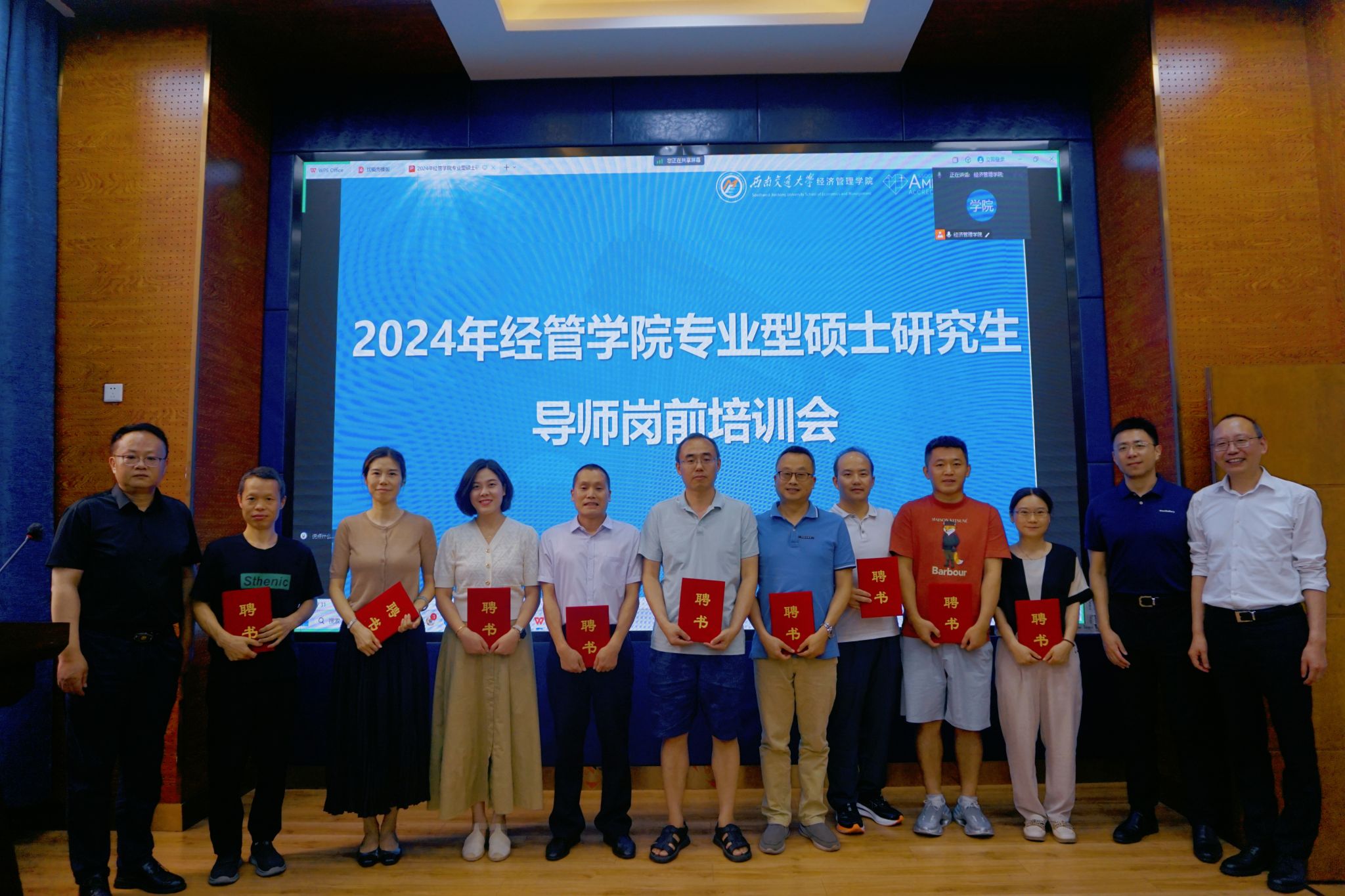 培训会结束后,举行了聘书颁发仪式。郭强书记、韩科院长、李良副院长为2024年新增专业型硕士生校内导师和校外导师颁发了证书。