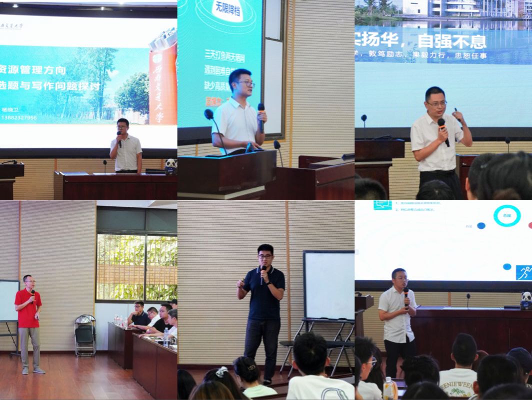 2022级周末三班贾立洋分享了“MBA项目管理论文经验”、2021级晚班杨晓卫分享了“人力资源管理方向论文选题与写作问题探讨”、2022级周末三班卓成分享了“MBA金融类论文写作经验”、2021级线上二班蒋磊分享了“项目与运营管理方向论文写作经验”、2022级周末四班李泉分享了“3天完成开题9天完成论文初稿”、2022级线上线下班杨勇分享了“MBA战略论文写作经验”,论文经验分享代表们从不同的研究方向和角度,就如何提升论文的创新性、如何把握学术前沿动态、如何有效管理时间与资源等方面给出了宝贵的建议。
