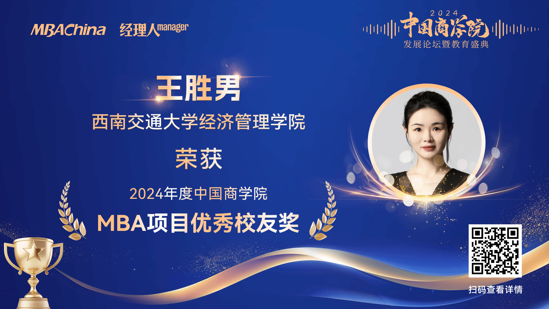 校友王胜男荣获"2024年度中国商学院MBA项目优秀校友奖"